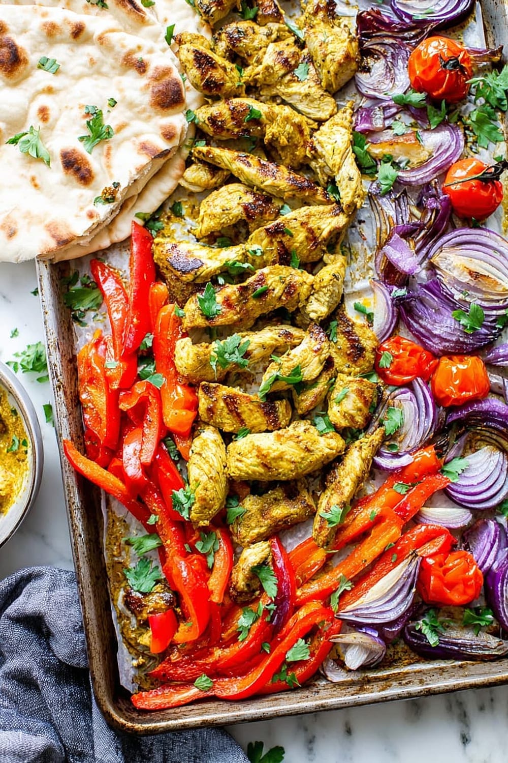 Cut chicken strips against the grain for maximum tenderness—look for the direction of muscle fibers and slice perpendicular to them. Don’t skip the marinade time—even 15 minutes makes a difference, but 30 minutes is ideal for deeper flavor penetration. Pat vegetables dry before adding to the sheet pan to prevent steaming and ensure proper caramelization. Use two sheet pans if doubling the recipe rather than overcrowding one pan.