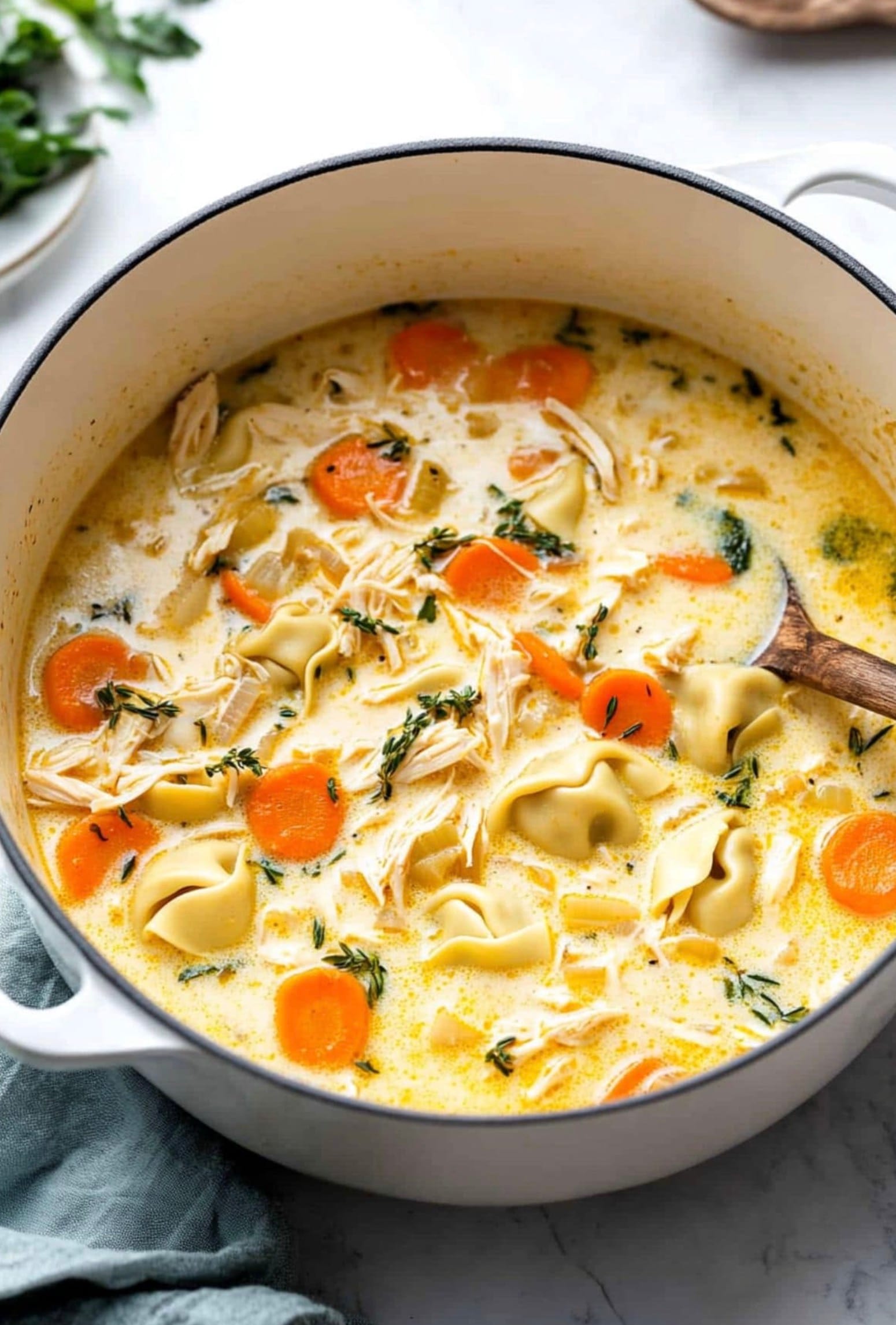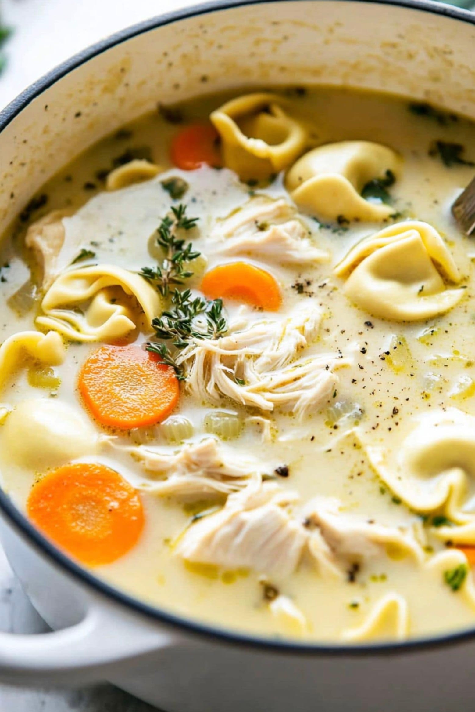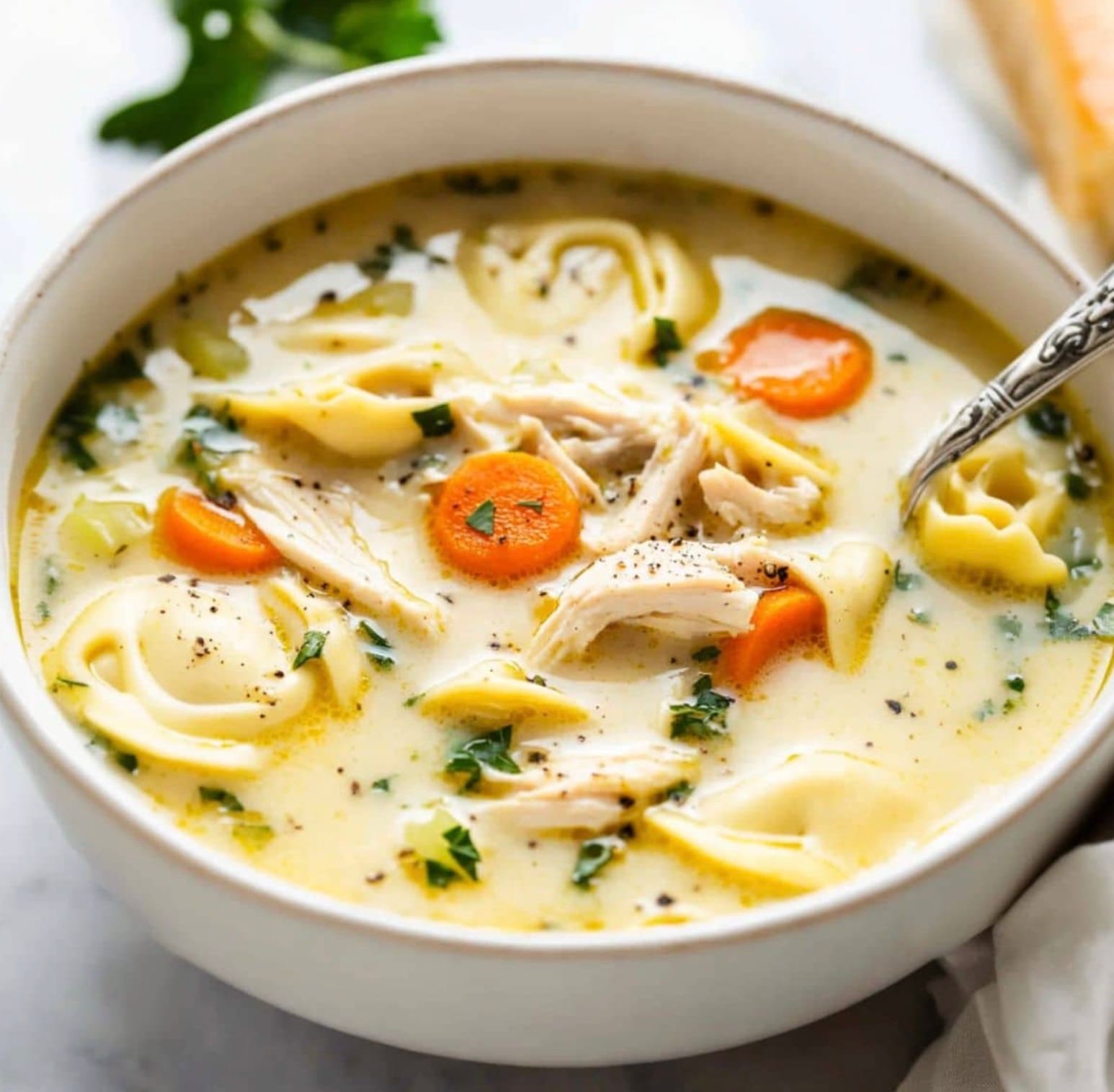 You’ll need some basic ingredients like chicken, tortellini, and veggies. The recipe is simple to follow. Just cook the veggies, add broth and chicken, then toss in the tortellini. You can make it creamy by adding some heavy cream at the end if you like.