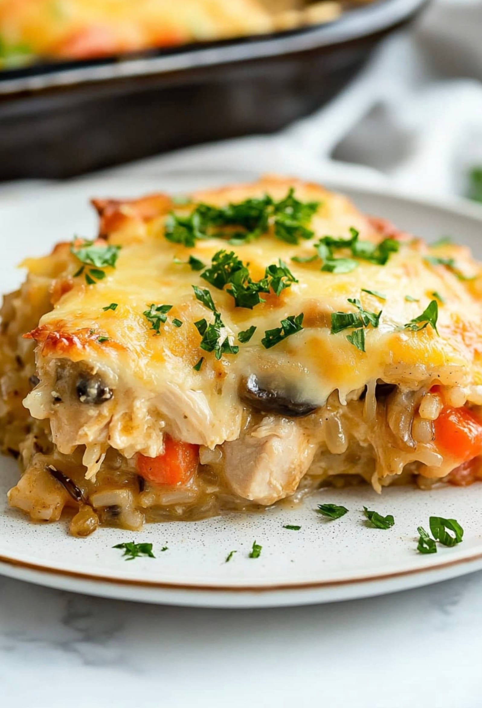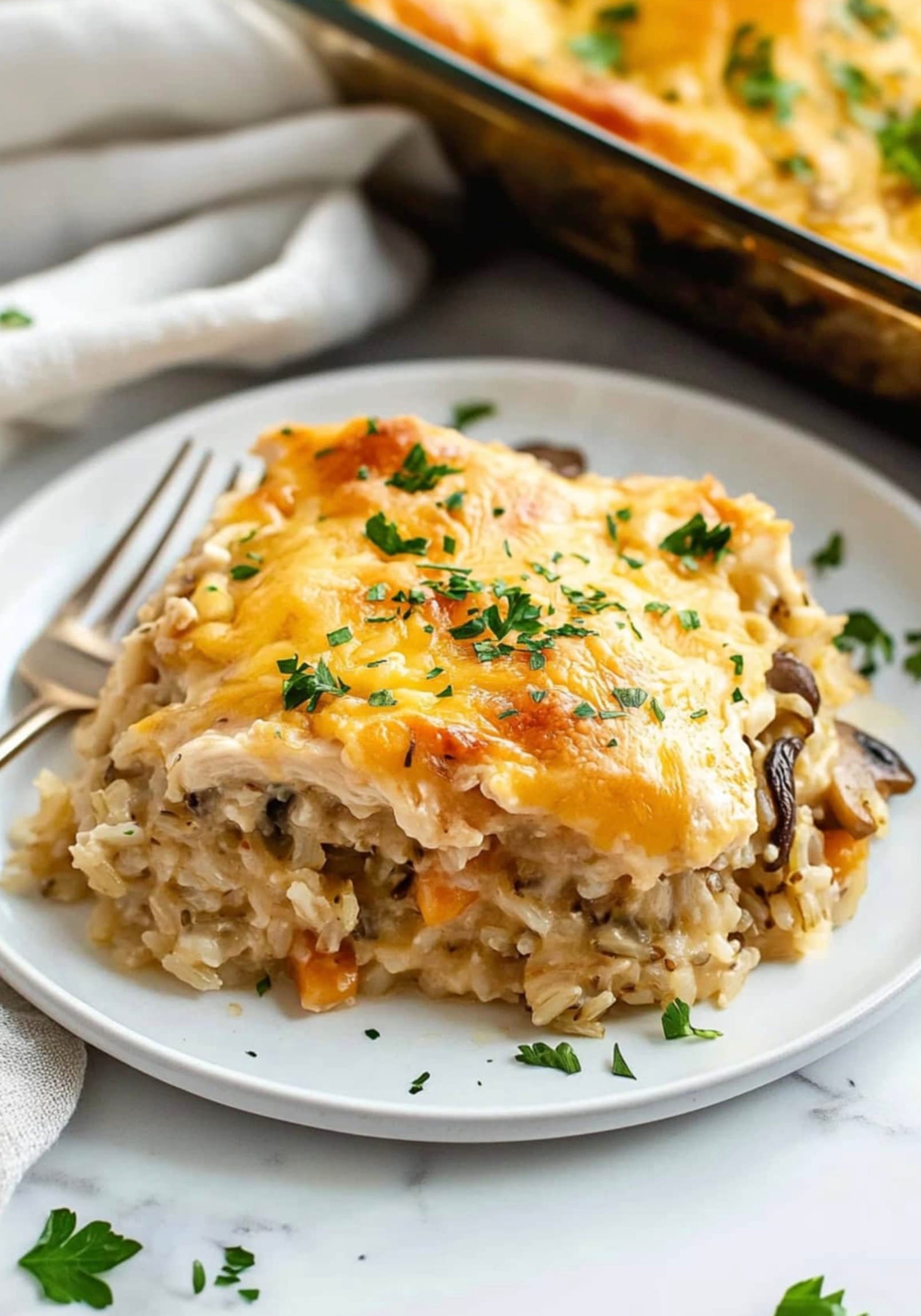 This casserole is easy to make and packed with flavor. You’ll start by cooking the wild rice, then sautéing veggies and making a rich sauce. Mix everything together with shredded chicken and cheese, then bake until golden and bubbly. It’s a great way to use up leftover chicken or rotisserie chicken for a quick weeknight meal.