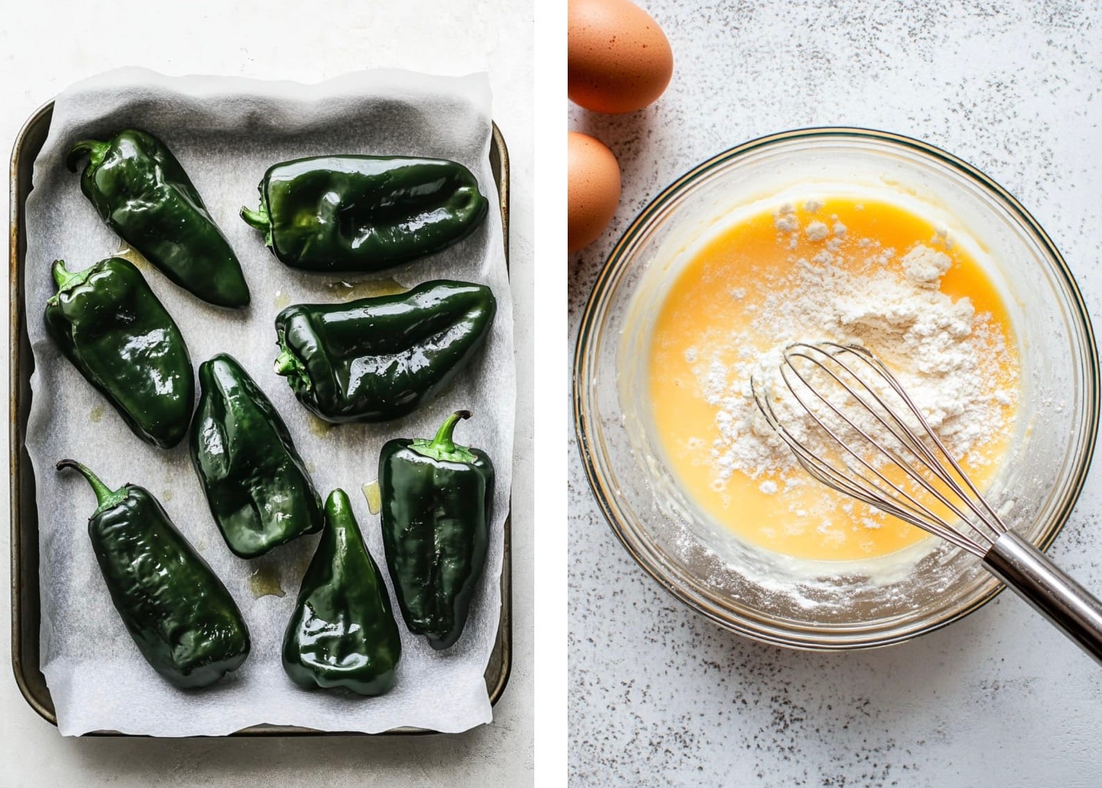 Don’t forget to preheat your oven and grab a 9×13-inch baking dish. You’ll also need a baking sheet lined with foil for roasting the peppers.