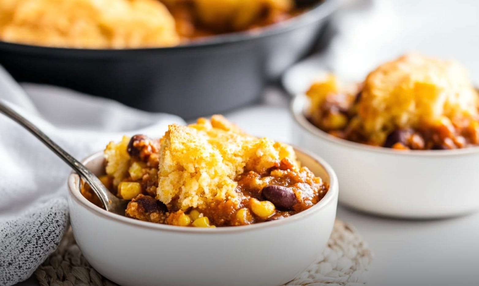 Skip the sugar in the cornbread topping. Instead, add extra spices like cumin or chili powder for flavor. Use low-fat buttermilk and reduce the melted butter to 1/4 cup.