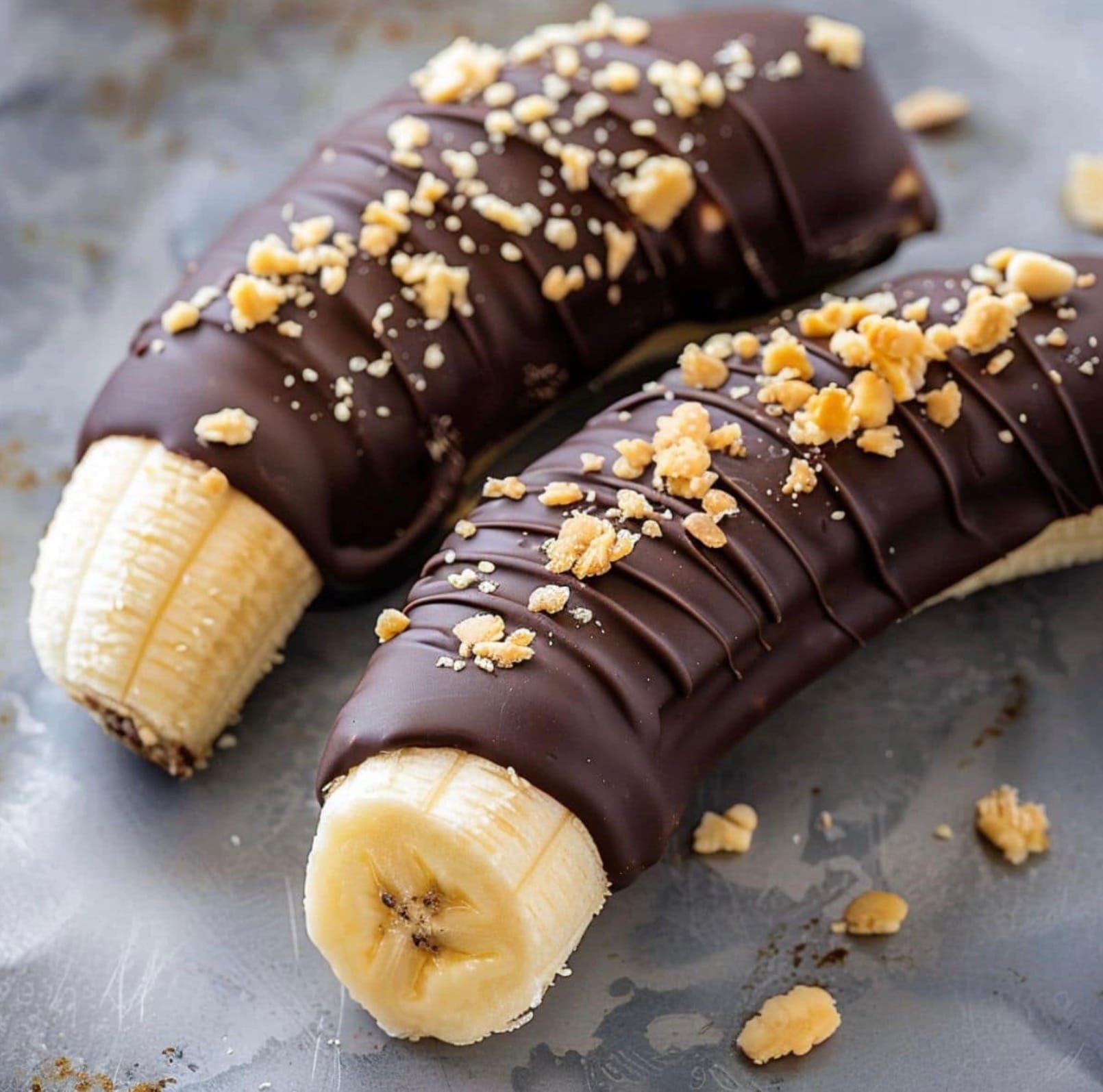 Place the dipped bananas back on the baking sheet. Freeze for another hour until the chocolate is hard.