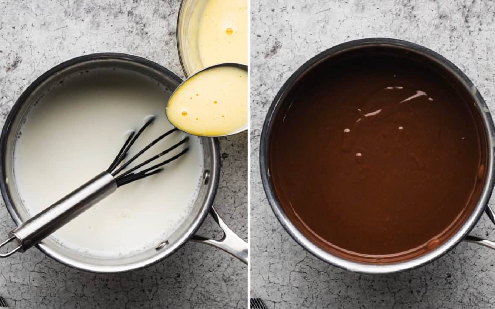 Now, pour the egg mixture back into the saucepan. Keep whisking until it thickens and starts to bubble gently. Take it off the heat.