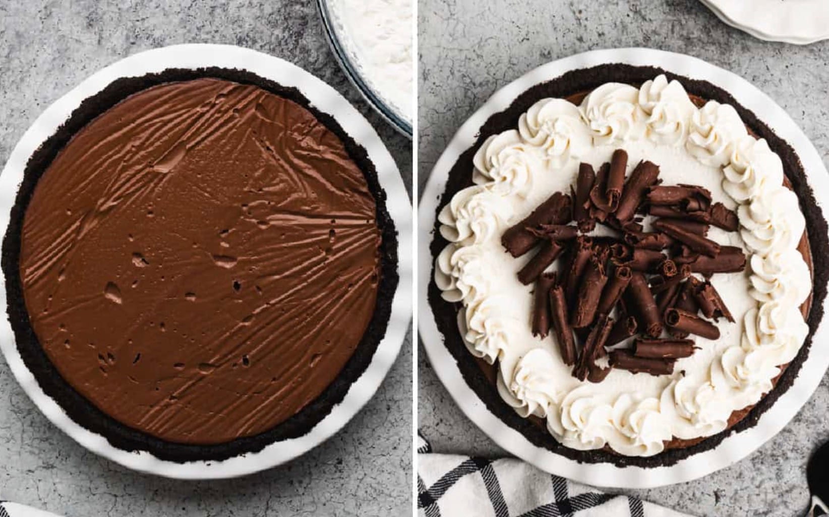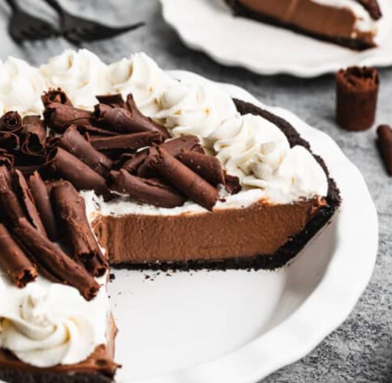 The pie starts with a crunchy Oreo crust, filled with a rich chocolate pudding, and topped with fluffy whipped cream. It’s perfect for chocoholics and pie lovers alike. Get ready to impress your friends and family with this decadent treat!