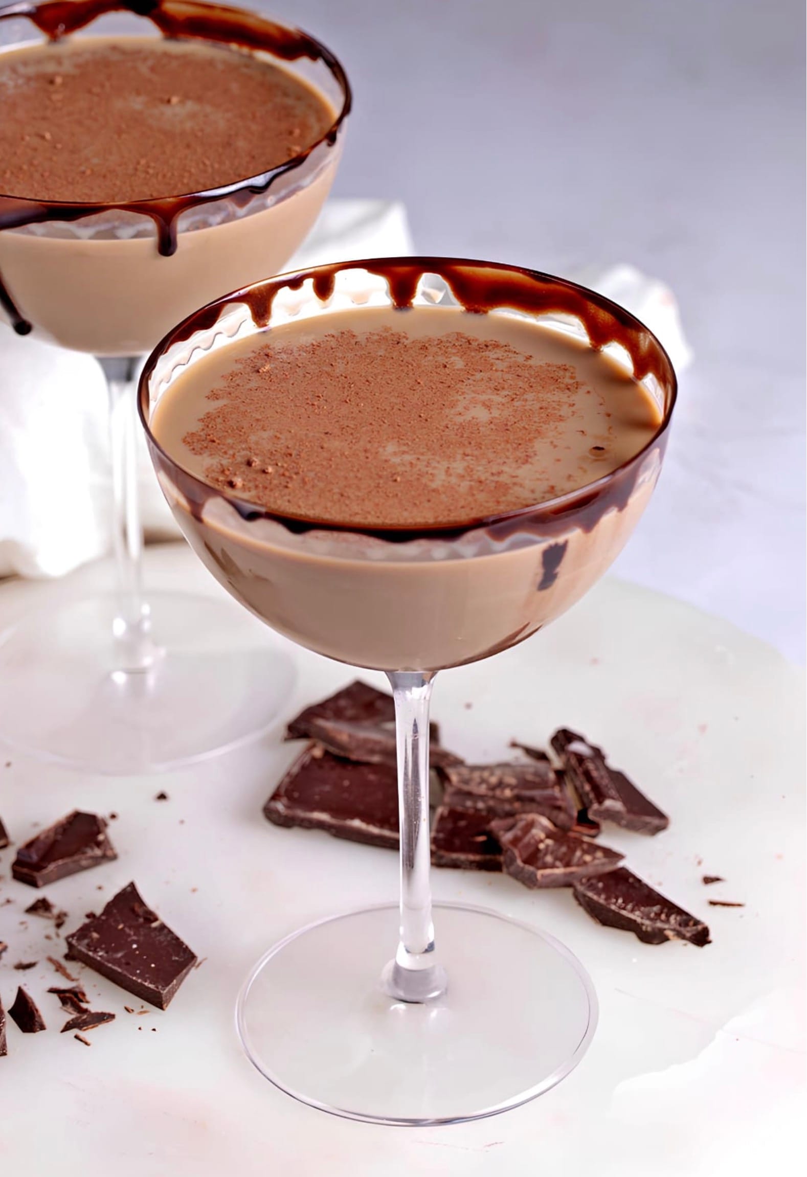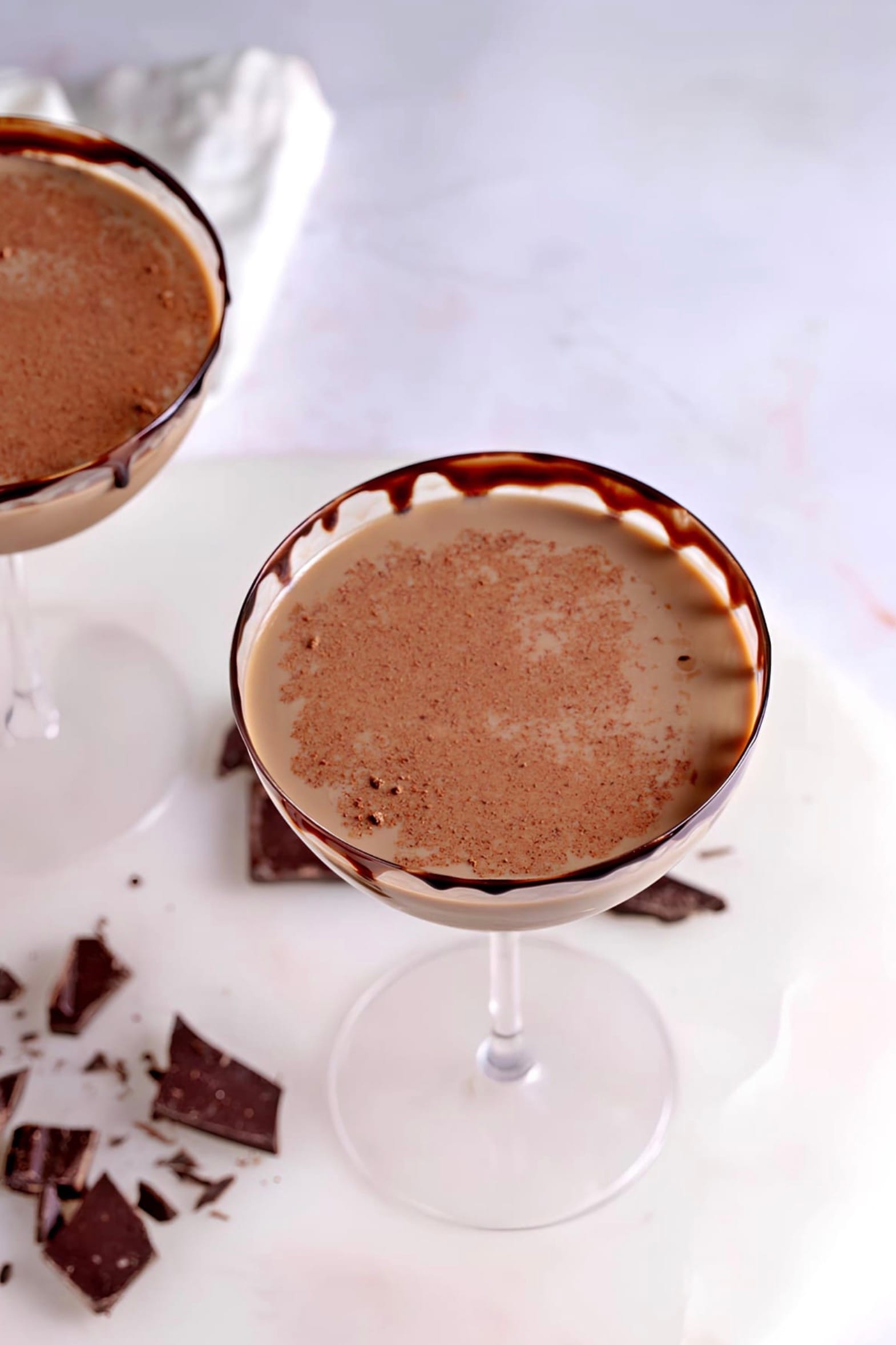 Your chocolate martinis are ready! Enjoy them right away while they’re nice and cold.