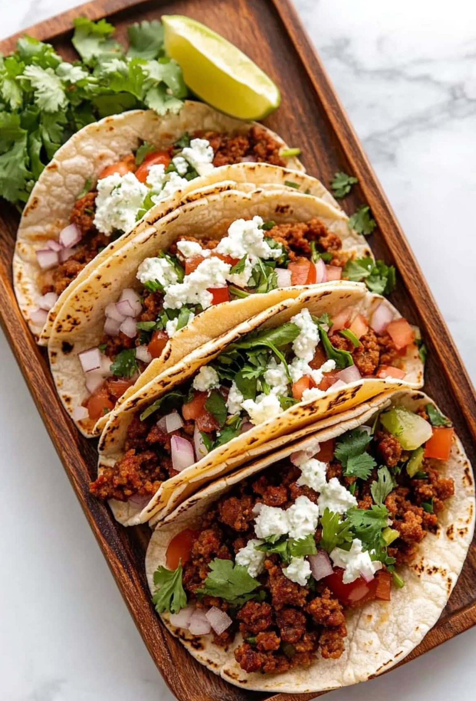 Chorizo tacos are a tasty and easy meal you can make in just 30 minutes. These spicy, flavorful tacos are packed with juicy chorizo, fresh veggies, and a zesty lime crema. The recipe makes 4-5 servings, perfect for a family dinner or small gathering.