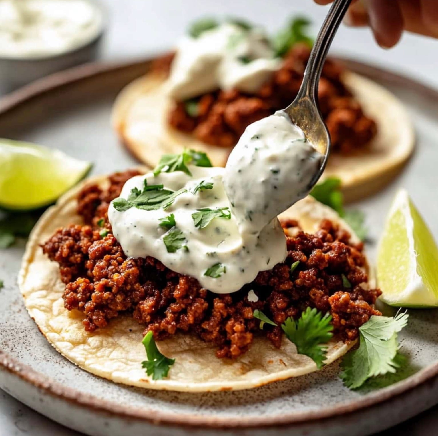 Don’t forget the lime crema! Drizzle some on top of each taco.