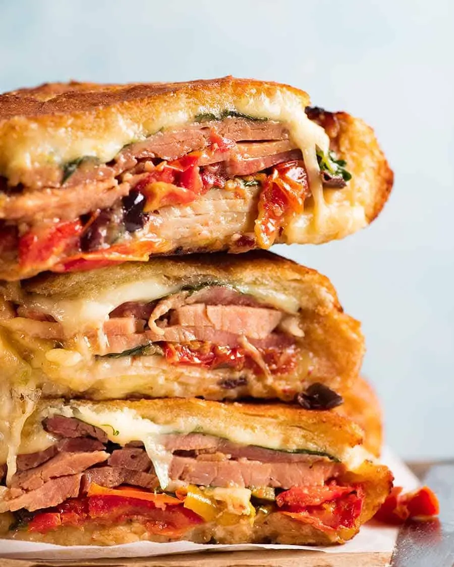 For easy slicing, let the baked sandwich rest for 5 minutes before cutting. Use a serrated knife for clean cuts.