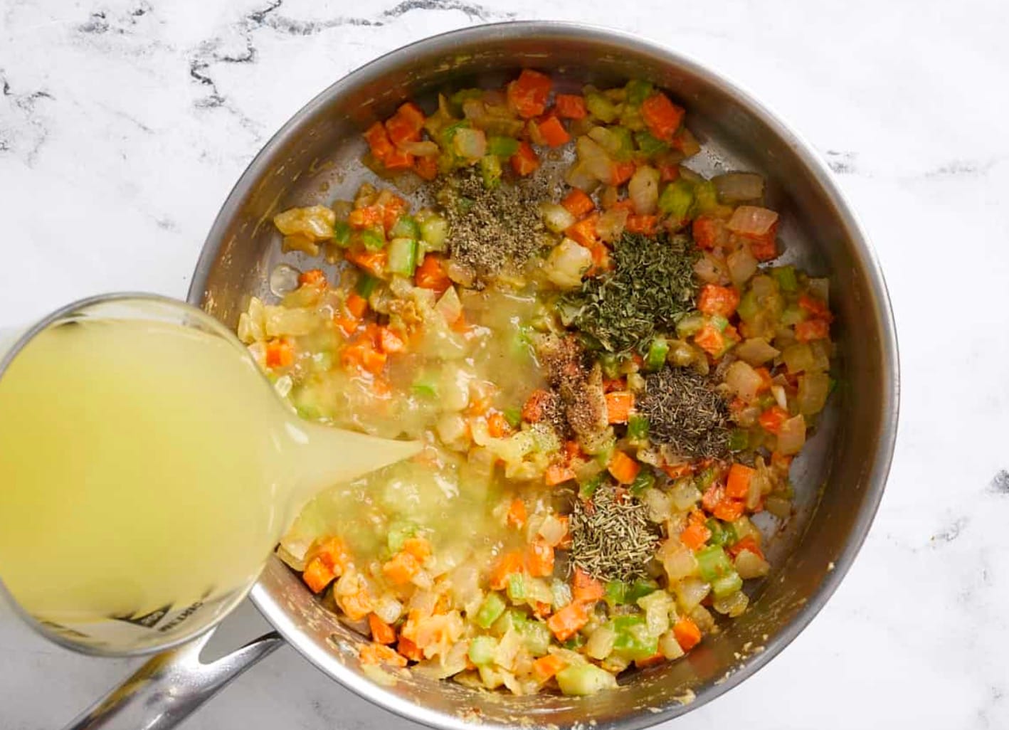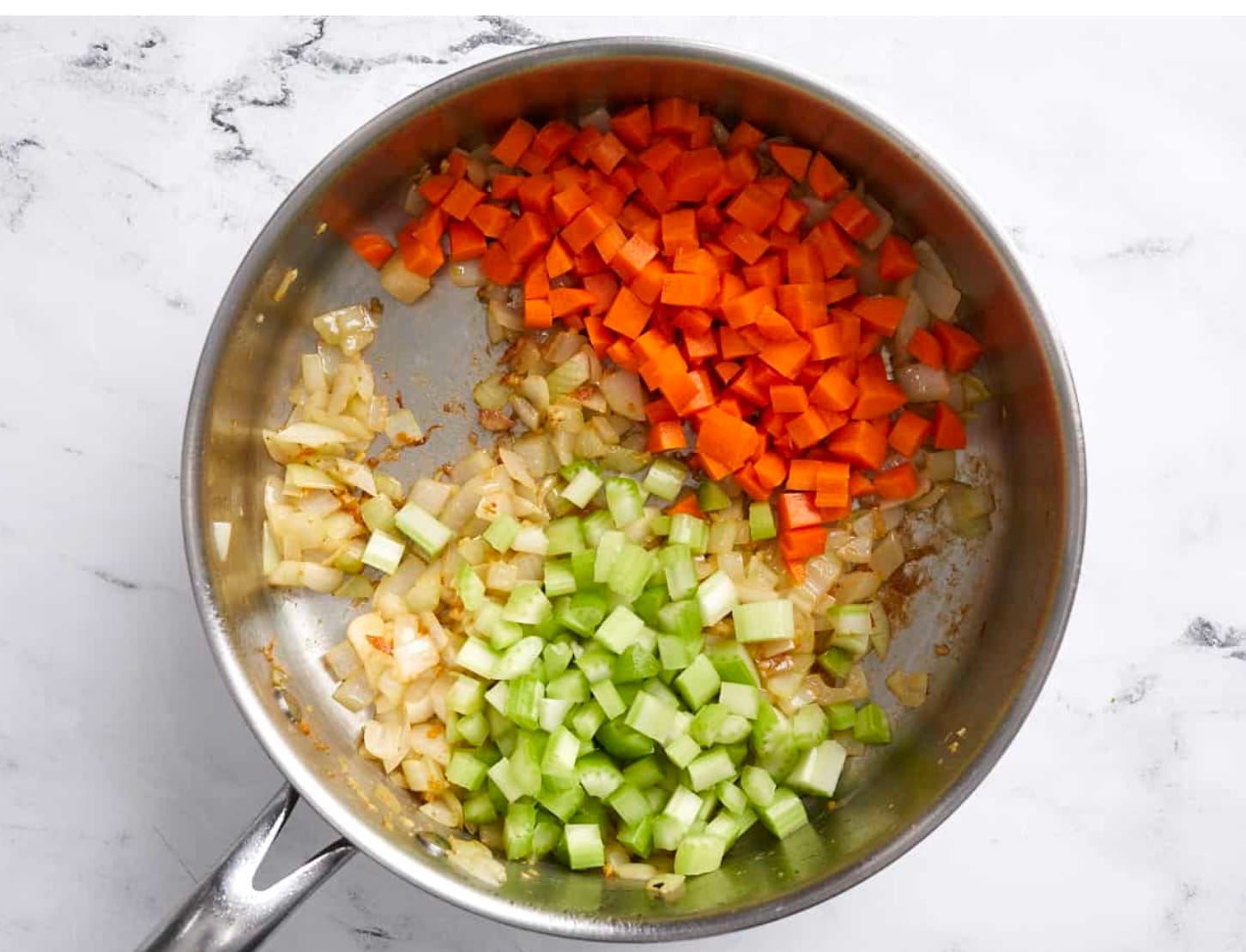 Toss in diced carrots and celery. Cook for about 5 more minutes.