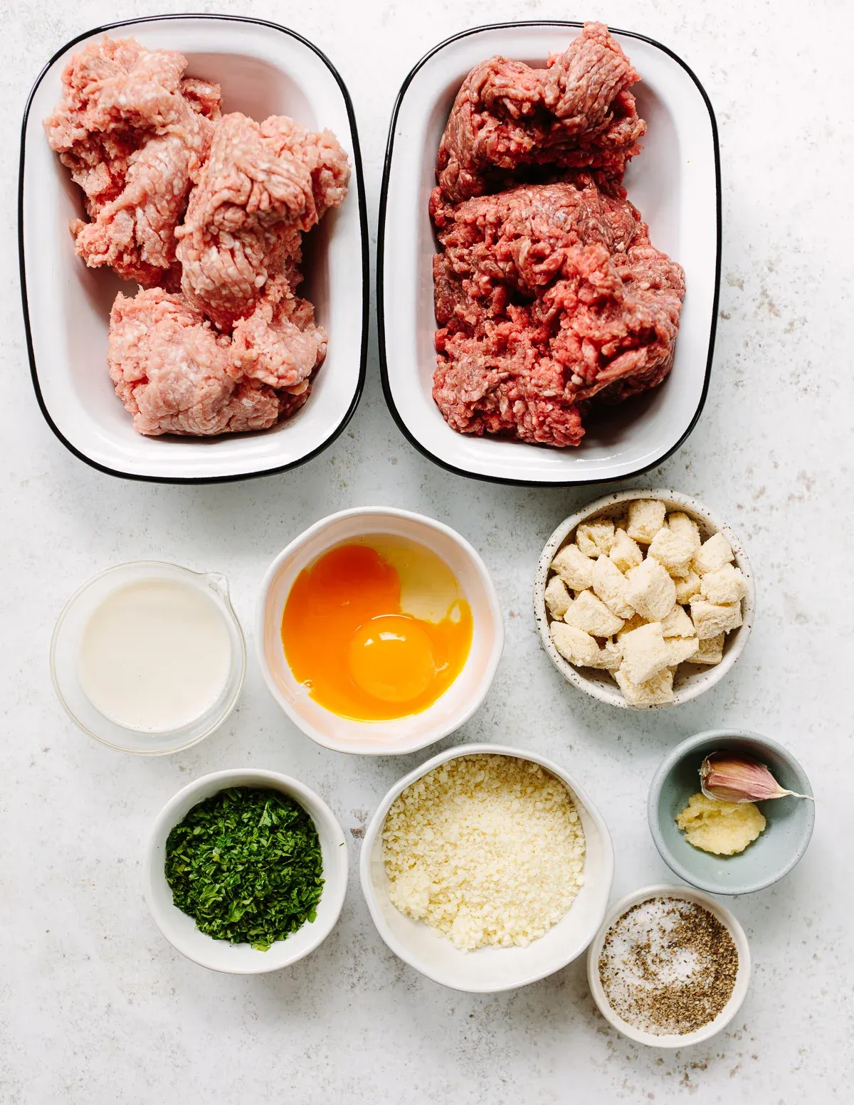 These ingredients will make about 16 meatballs. Feel free to double the recipe if you’re cooking for a crowd or want leftovers. Remember, the key is in the mix of meats and the fresh herbs. Happy cooking, Chris!