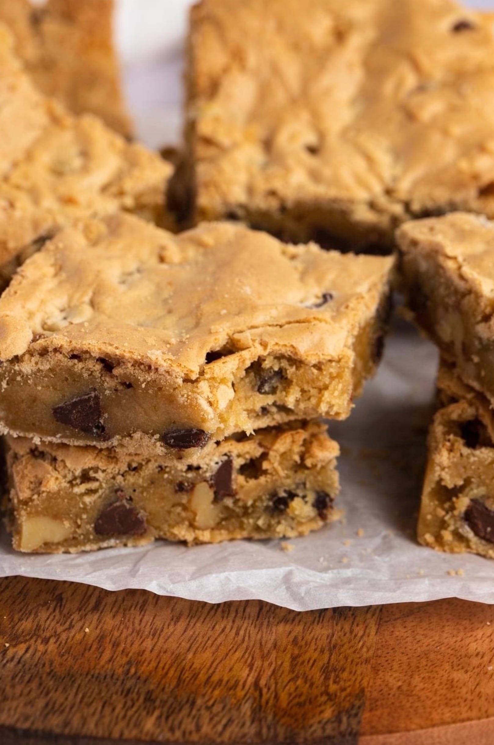 The recipe uses simple ingredients like brown sugar, eggs, flour, and chocolate chips. You’ll mix the wet and dry ingredients, add in some walnuts and chocolate chips, then bake the bars in a 9×13-inch pan. The result is a gooey, chocolatey dessert that’s perfect for sharing.