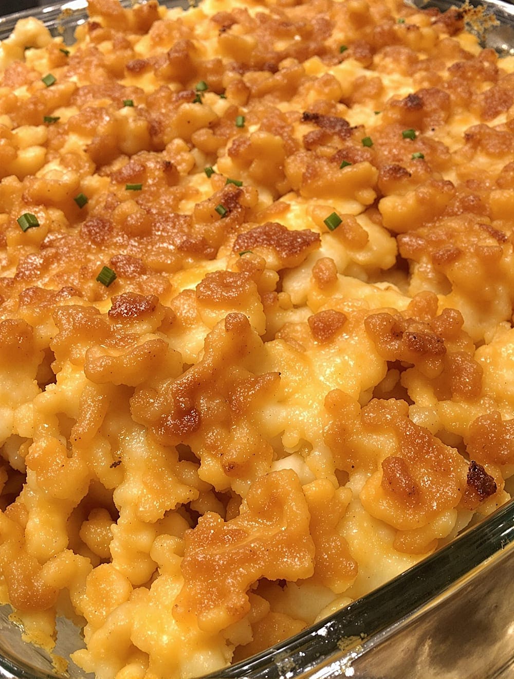Balance this rich casserole with fresh green salad dressed in vinaigrette, steamed broccoli with lemon, or roasted asparagus for color and nutrition. Glazed carrots add sweetness that complements the savory cheese, while garlic green beans provide a crisp texture contrast. Cornbread or buttermilk biscuits complete the comfort food experience.
