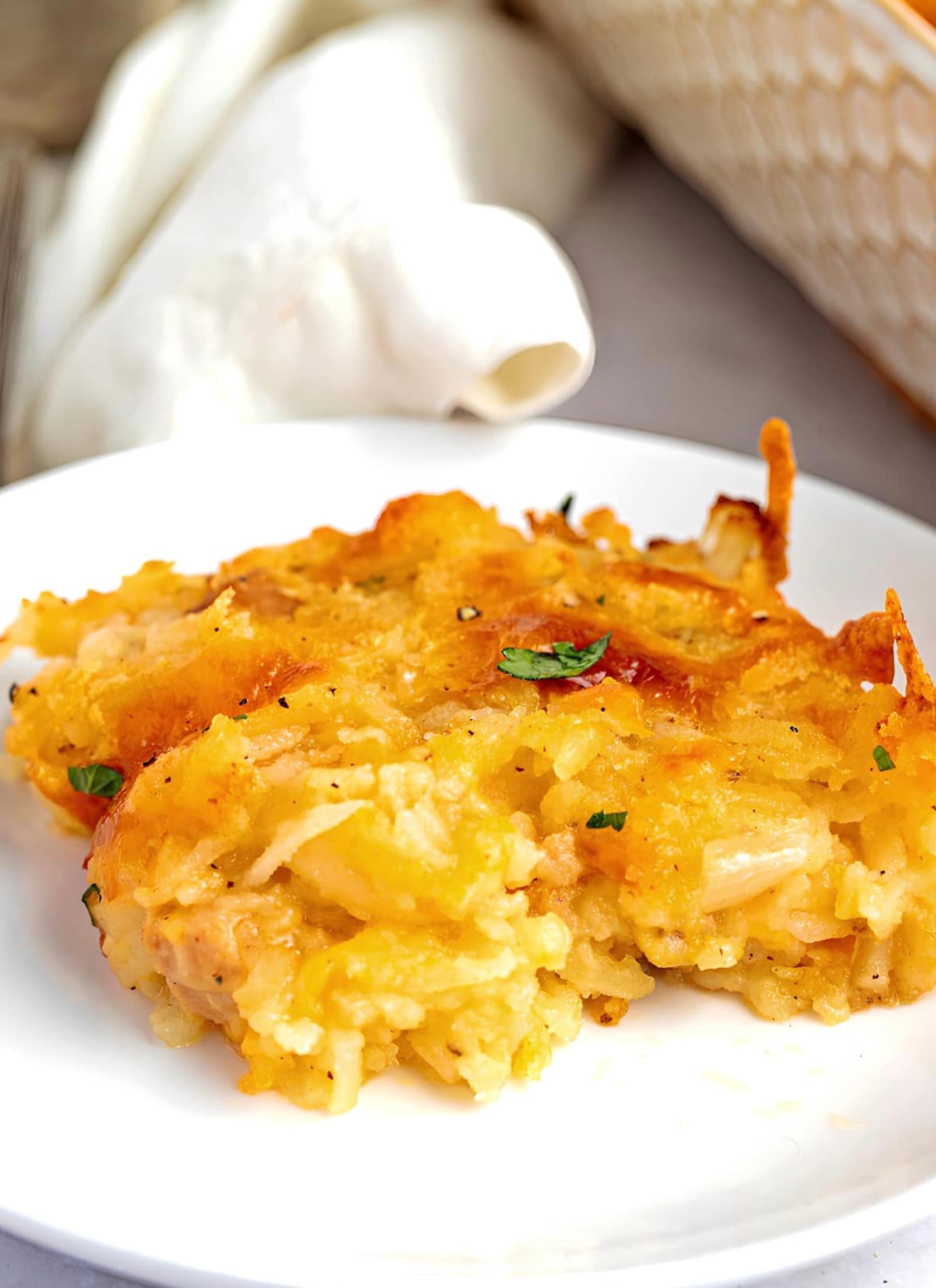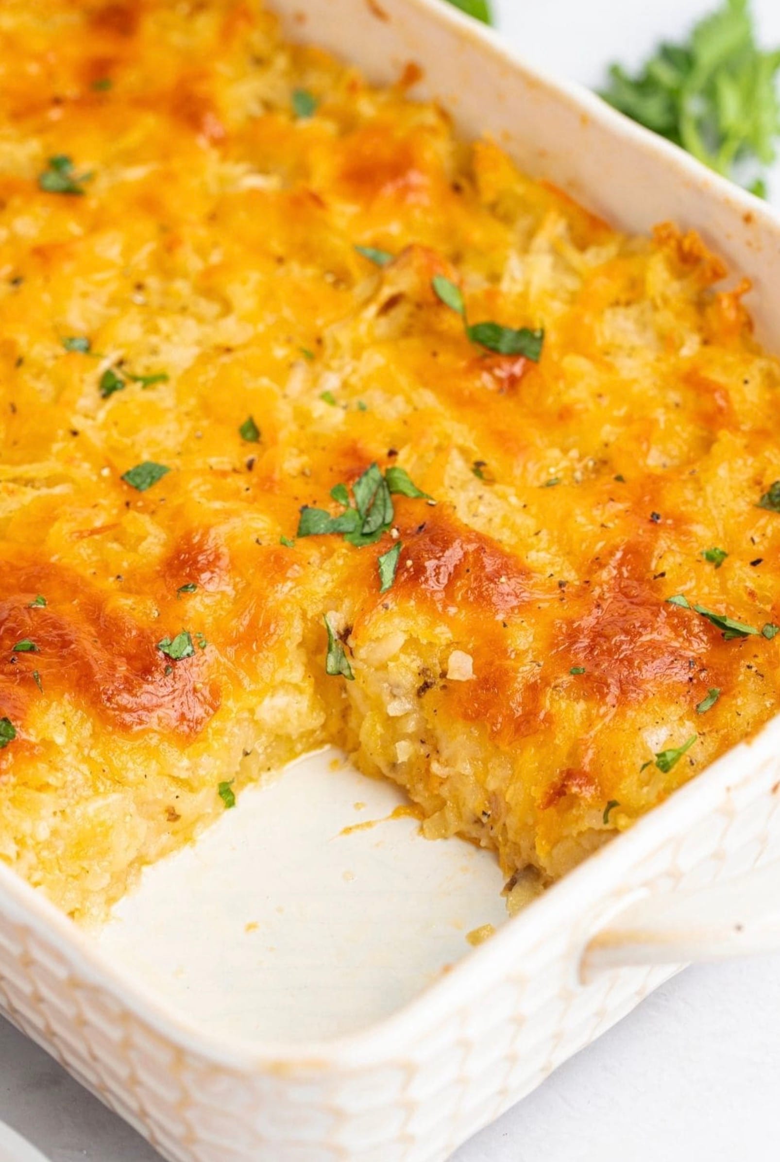 You’ll love how quick and simple this casserole is to throw together. Just mix the ingredients in a bowl, spread in a baking dish, and pop it in the oven. The hardest part is waiting for it to finish baking! Your family will gobble up this comforting, cheesy potato dish.