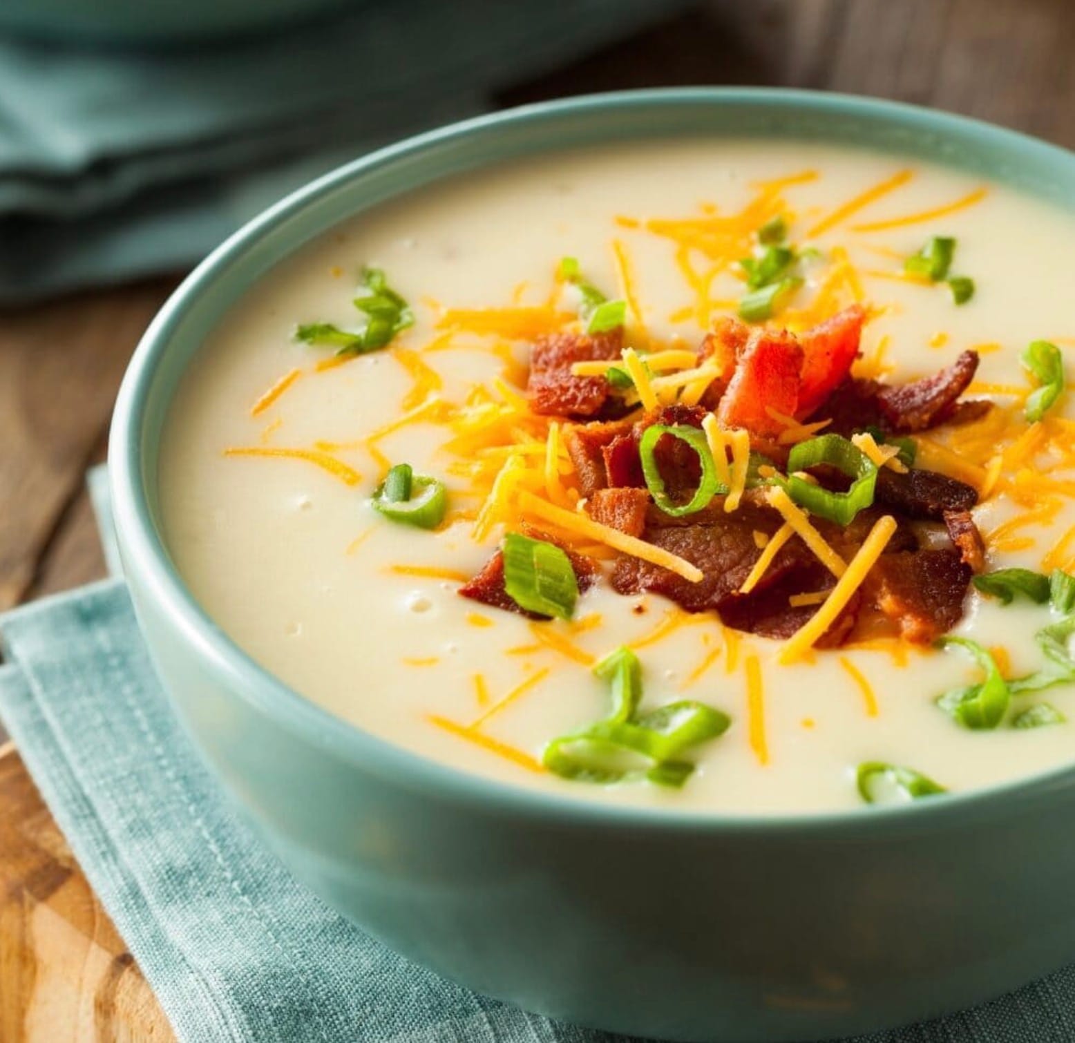 After 30 minutes, give the soup one last stir. Ladle it into bowls and top with crispy bacon, shredded cheddar, chives, and parsley. Enjoy your homemade O’Charley’s loaded potato soup!