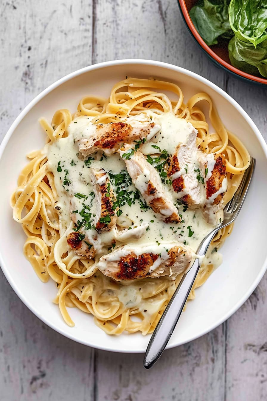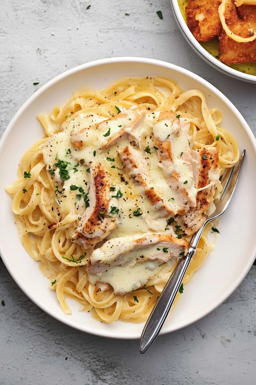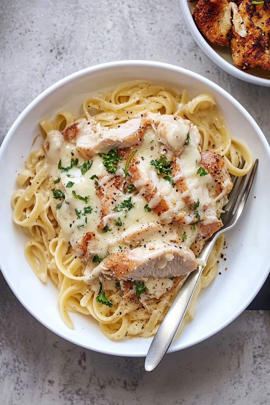 The recipe uses simple ingredients like fettuccine, chicken breast, heavy cream, and Parmesan cheese. You’ll create a rich, velvety sauce that coats the pasta and tender chicken. With easy-to-follow steps, you’ll be enjoying restaurant-quality Chicken Alfredo in no time.