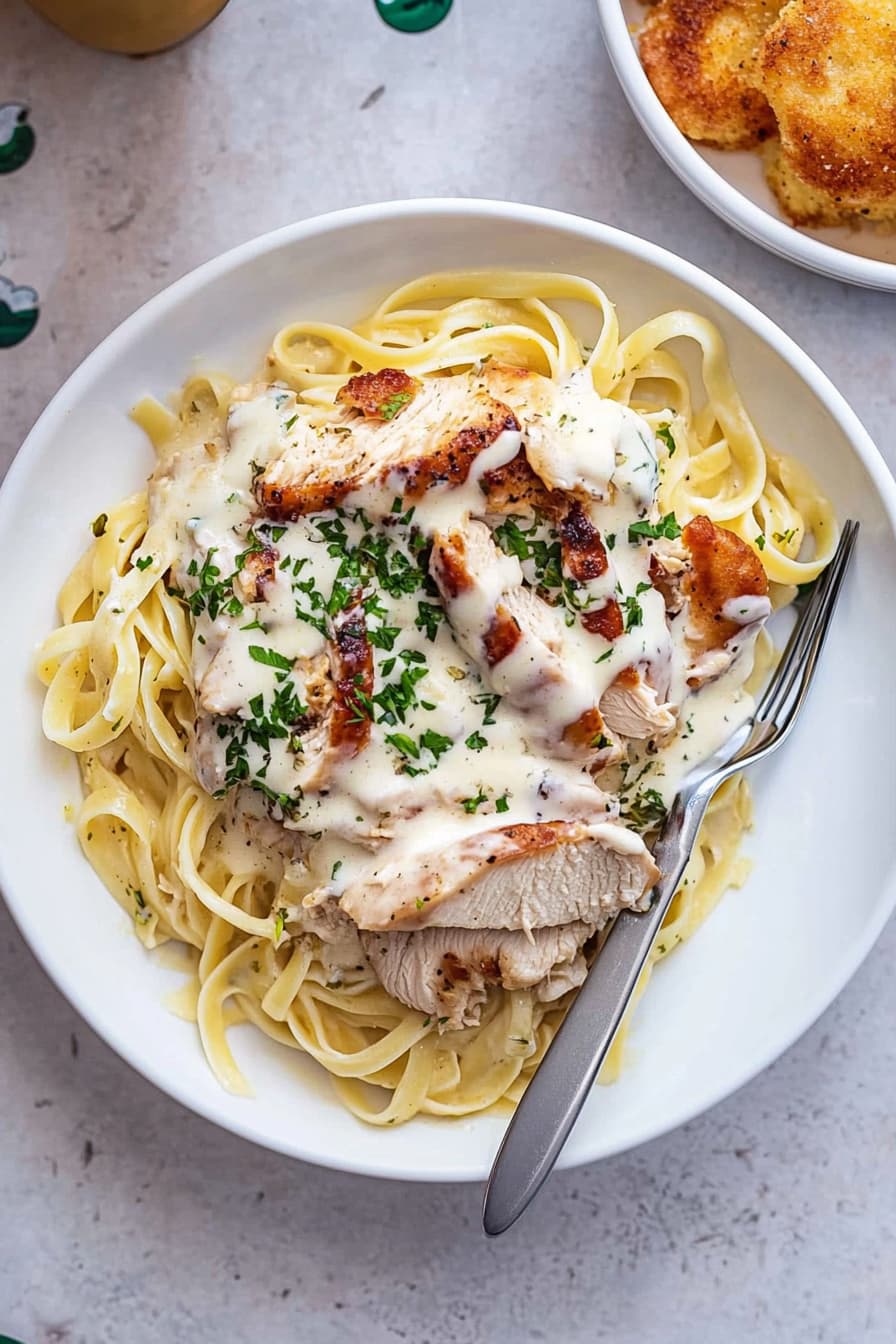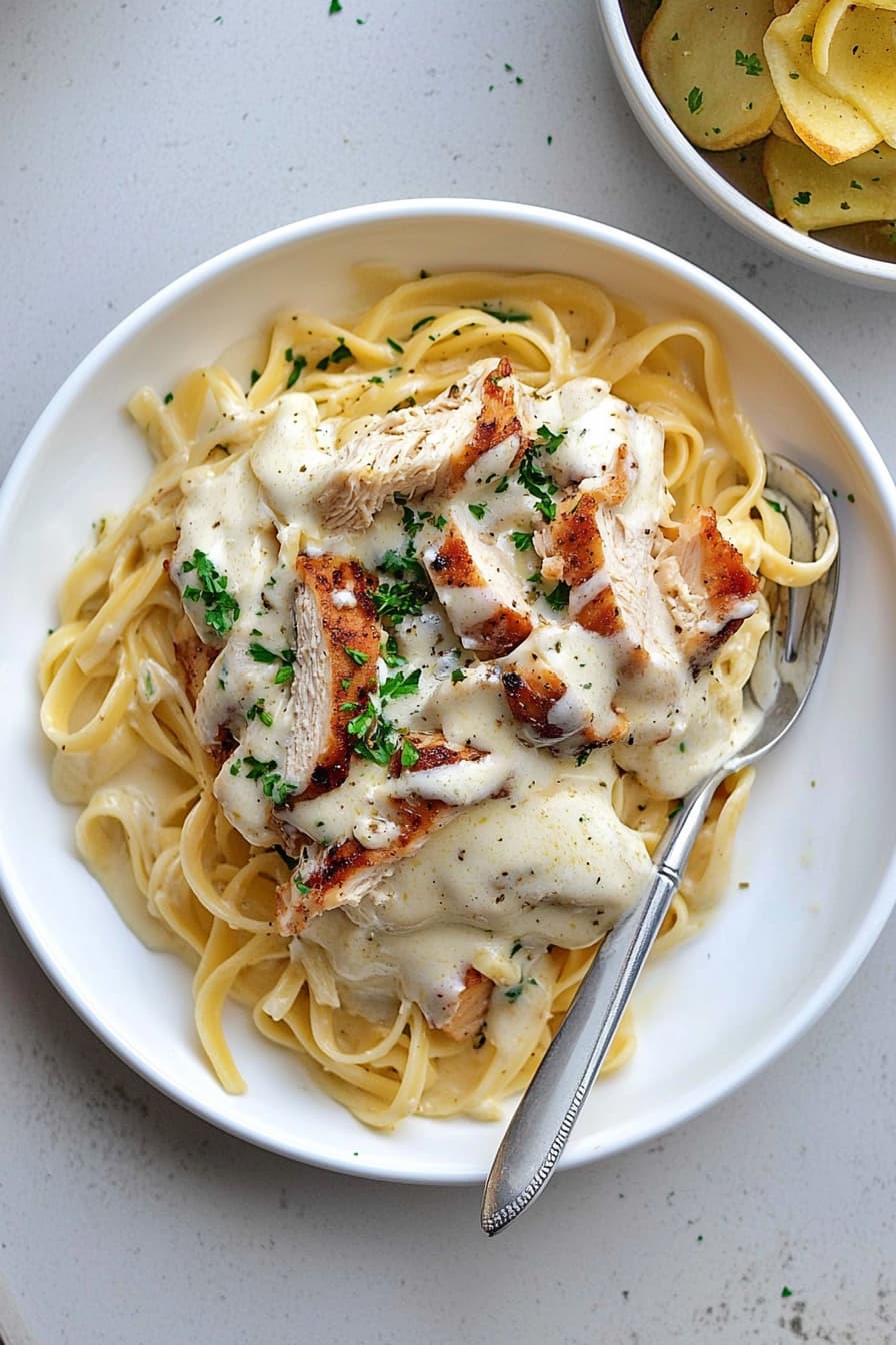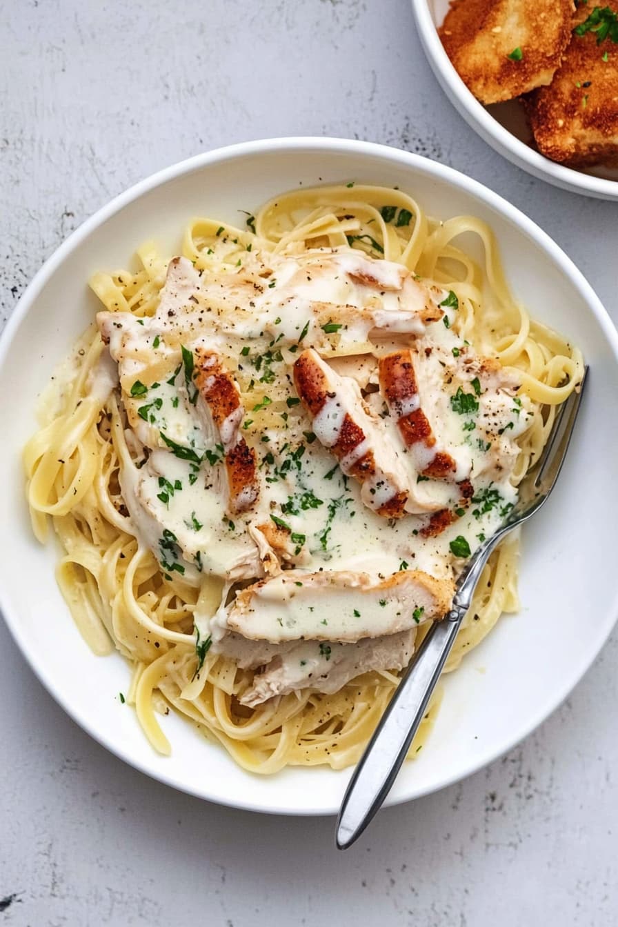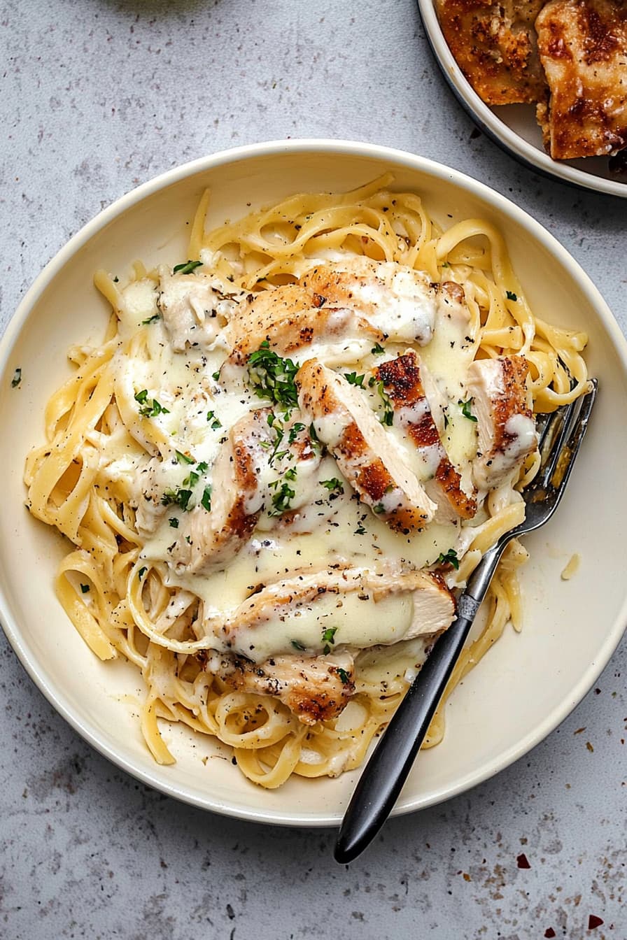 The recipe uses simple ingredients like fettuccine, chicken breast, heavy cream, and Parmesan cheese. You’ll create a rich, velvety sauce that coats the pasta and tender chicken. With easy-to-follow steps, you’ll be enjoying restaurant-quality Chicken Alfredo in no time.