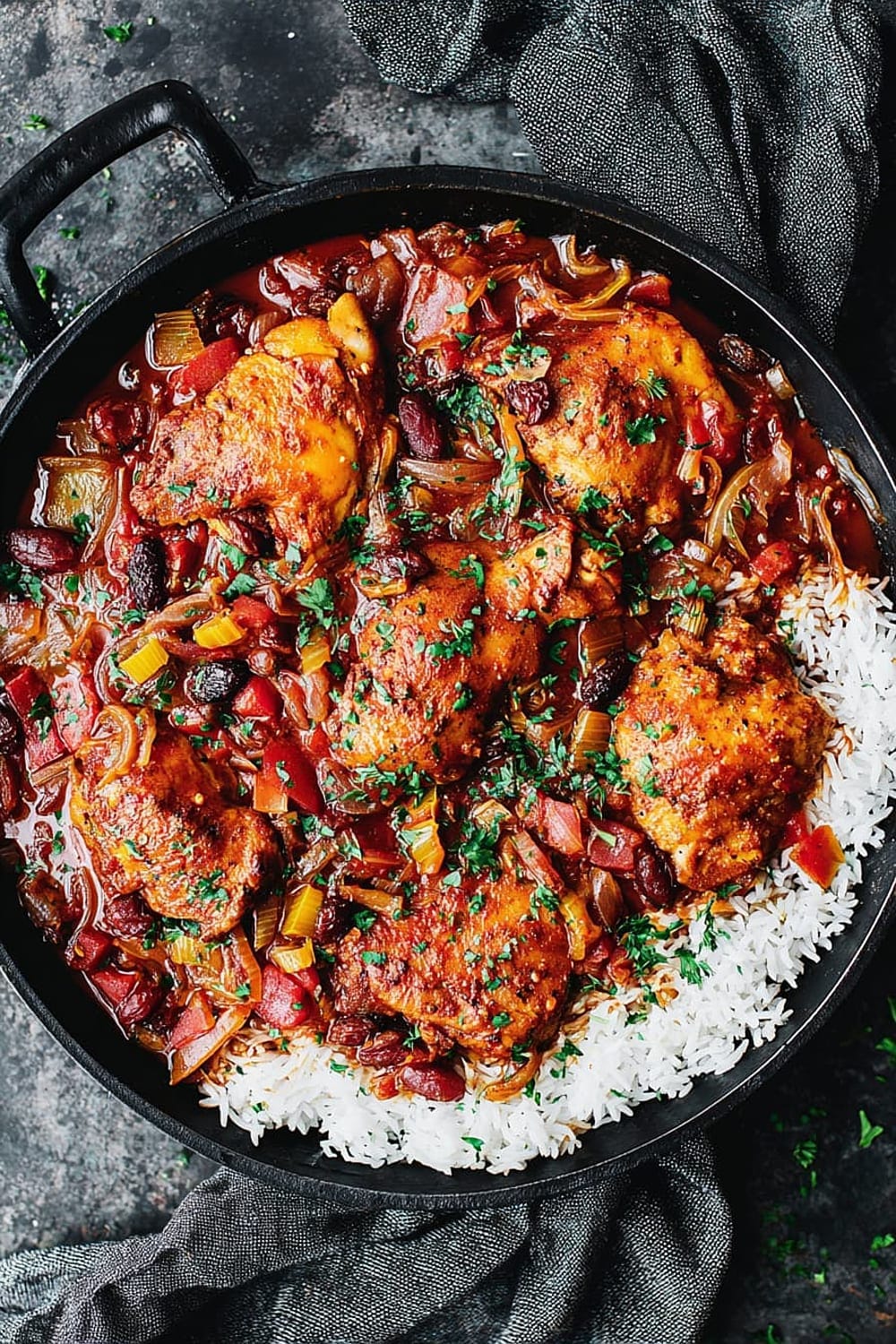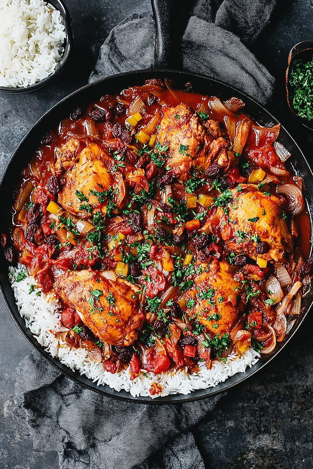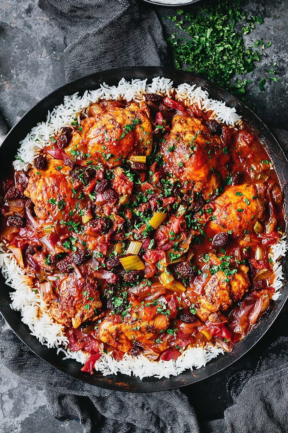 This dish improves dramatically overnight as the flavors meld and deepen. Store covered in the refrigerator for up to 4 days, and reheat gently over low heat to prevent the chicken from drying out. For longer storage, freeze portions for up to 3 months – just thaw overnight and reheat slowly. The rice is best stored separately and reheated with a splash of water or broth.