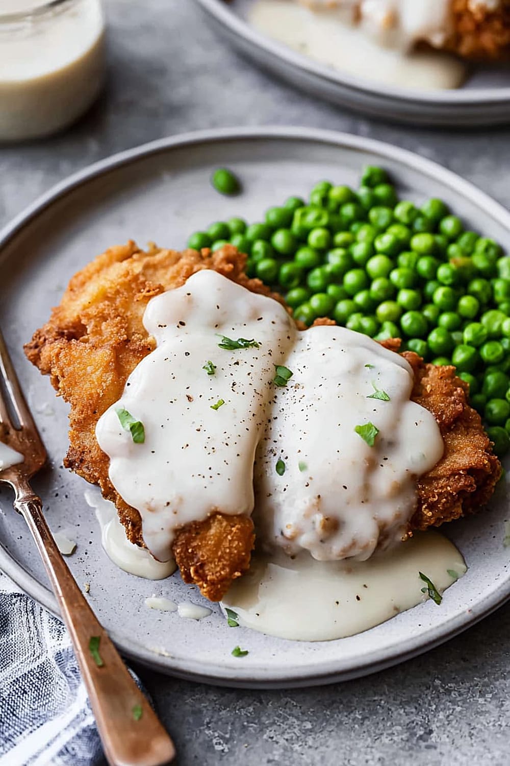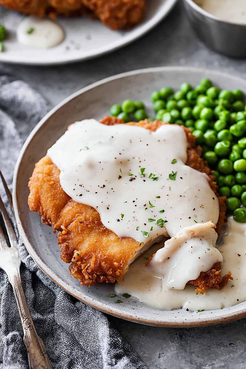 - 11 Serve the country fried chicken immediately with your favorite sides, generously smothered in the warm, creamy gravy for the ultimate Southern comfort food experience.