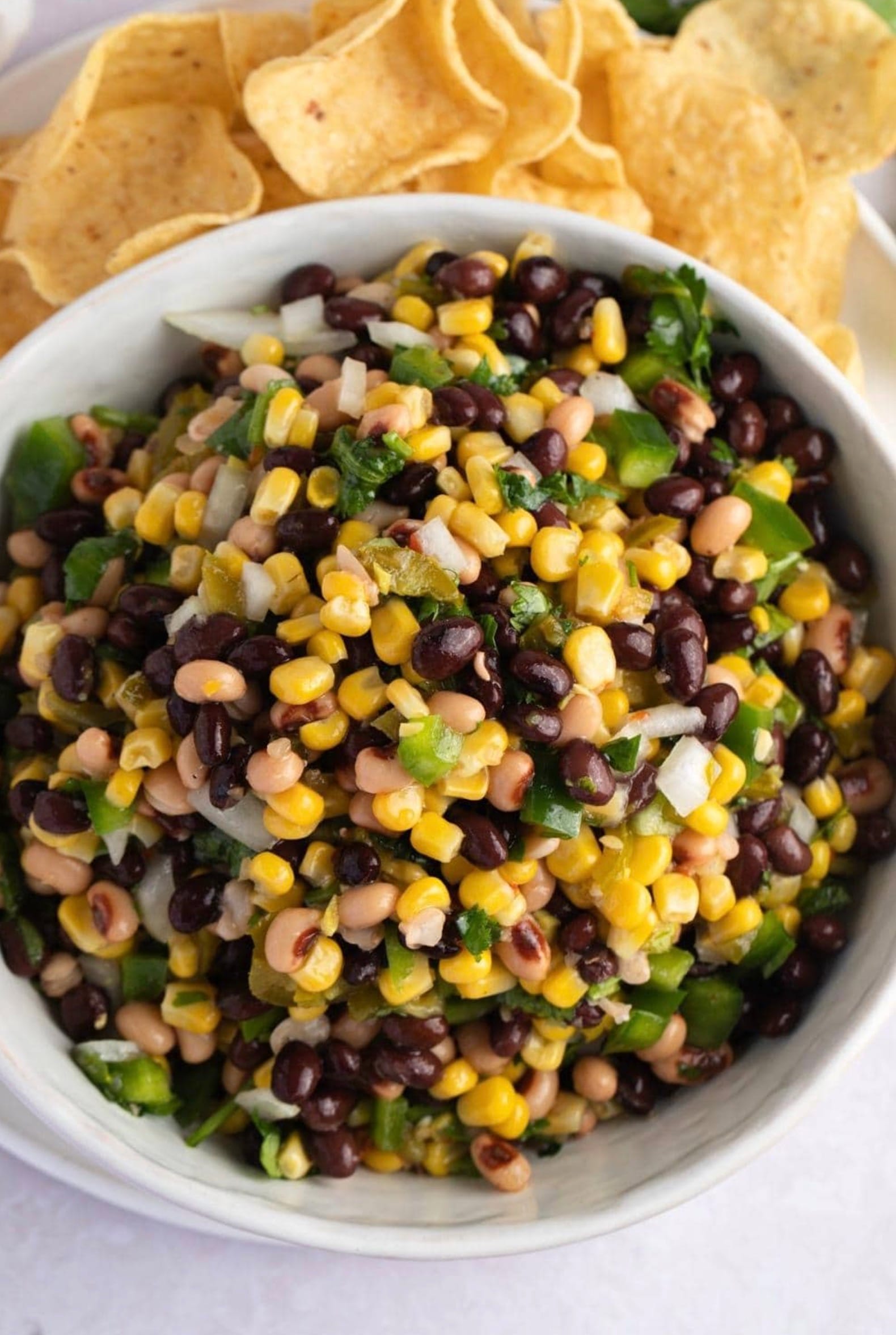 Serve your cowboy caviar cold or at room temperature. It’s great with tortilla chips, but you can also use it as a salad topper or burrito filling.