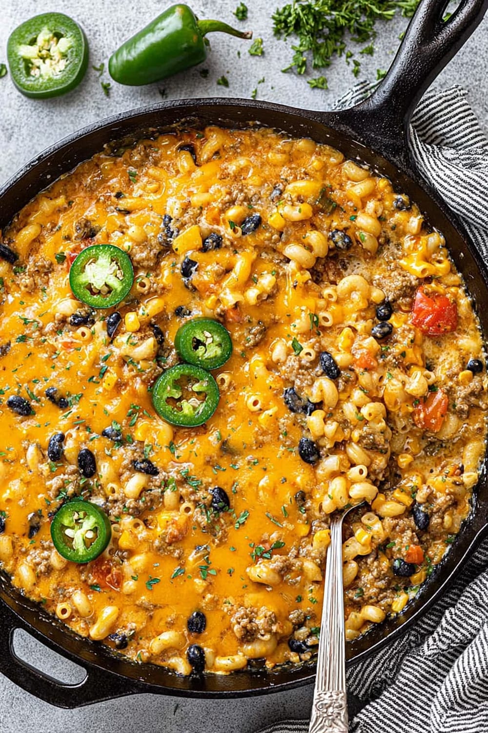 Every forkful delivers the perfect balance of creamy, cheesy comfort with just enough heat from the jalapeños and chili powder to keep things interesting without overwhelming your palate.