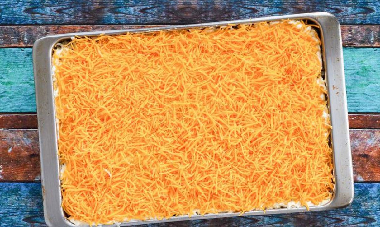 Sprinkle 2 cups of shredded Cheddar or Colby cheese on top.