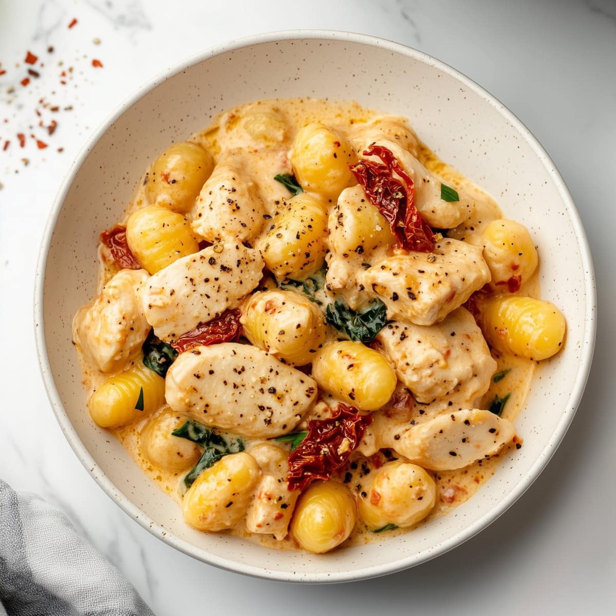 Don’t worry if you’re missing an item or two. This recipe is pretty flexible, so feel free to swap ingredients based on what you have on hand. The key is to keep the main components: chicken, gnocchi, and a creamy sauce.