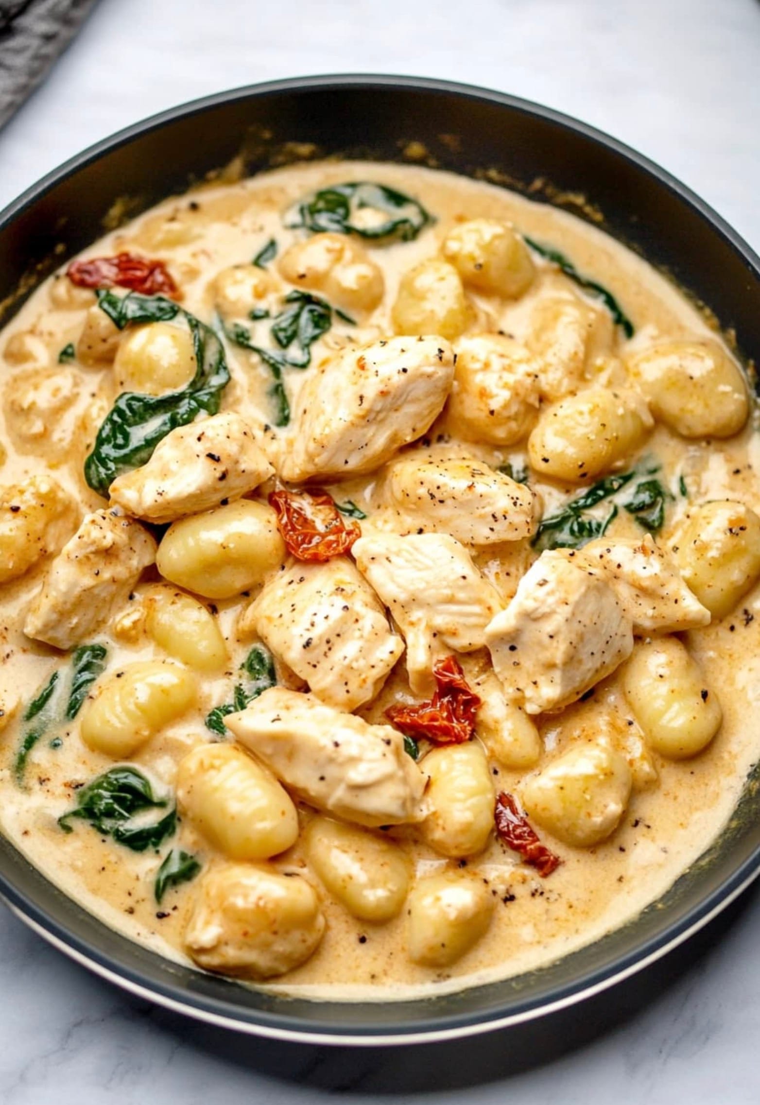 For meal prep, cook the chicken and sauce ahead of time. Store in the fridge, then add the gnocchi and spinach when reheating for a quick weeknight dinner.