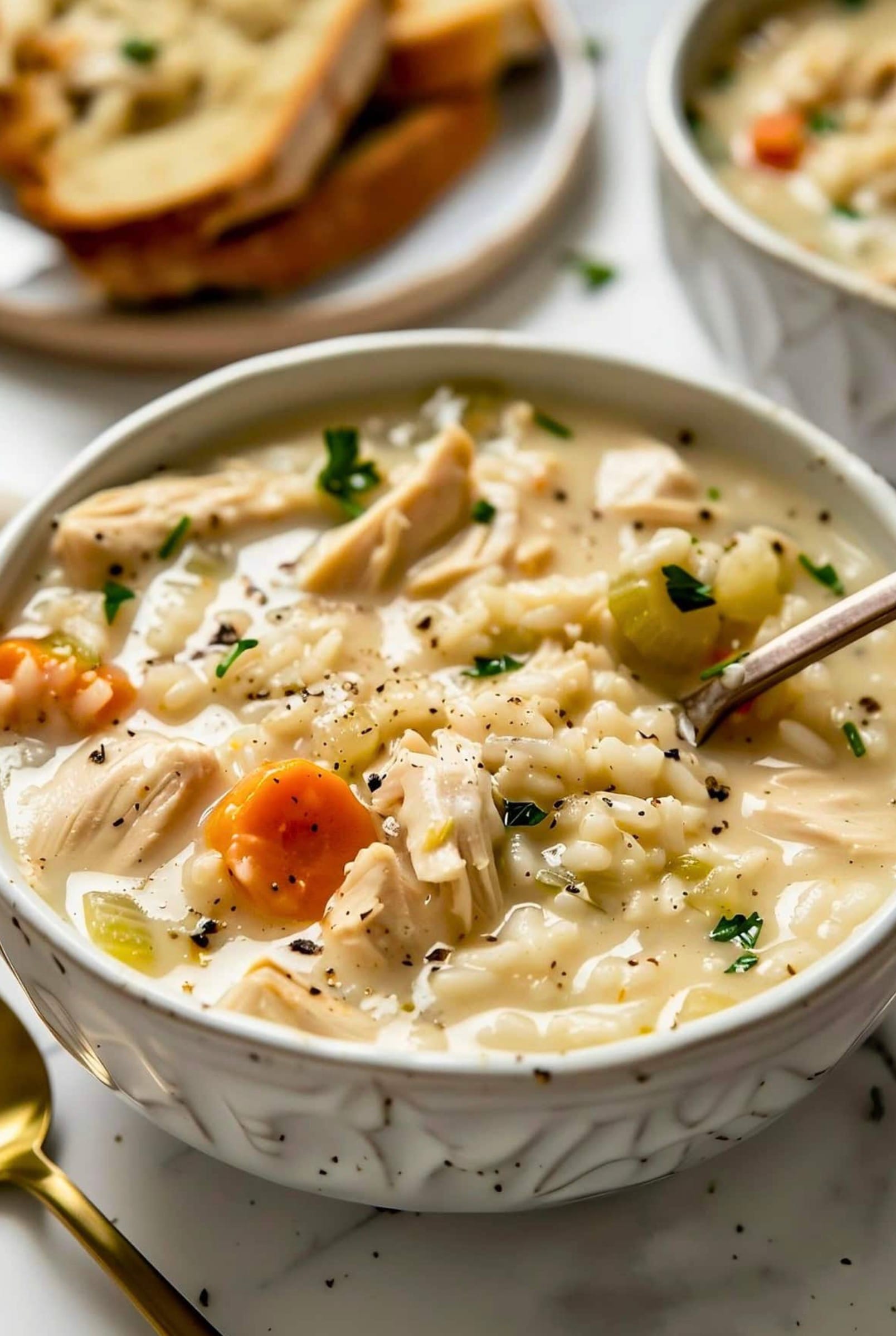 Are you craving a warm, comforting meal? This creamy chicken rice soup is perfect for you! It’s easy to make and takes only 30 minutes from start to finish. You’ll love how the rich broth, tender chicken, and soft rice come together in every spoonful.
