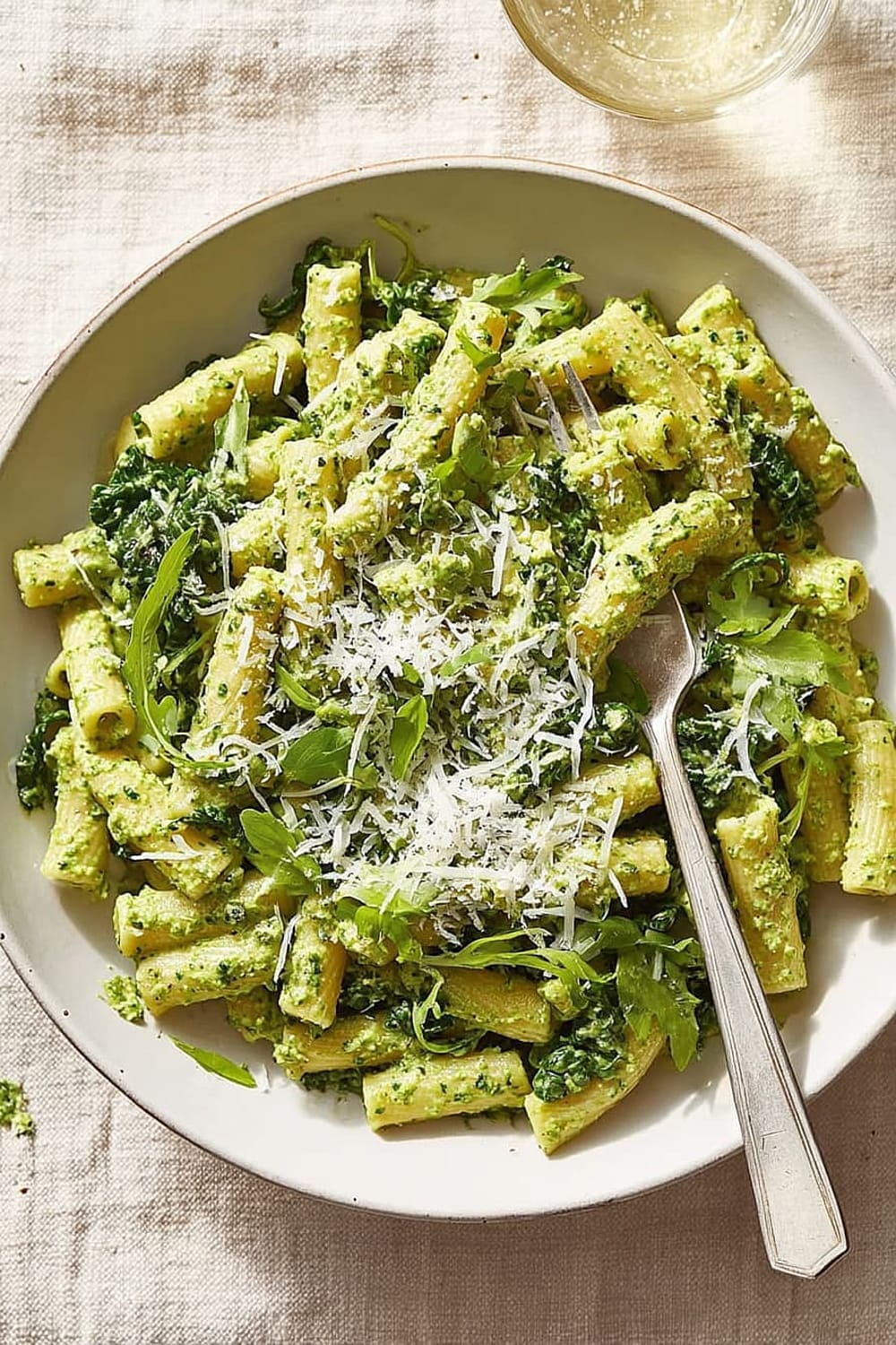 Don’t add all the fresh kale at once; gradually incorporate it while tossing to ensure even wilting without overcooking. If your sauce appears too thick, add pasta water 1 tablespoon at a time rather than dumping it all in. Avoid over-processing the initial kale and scallion mixture—you want some texture, not baby food consistency.