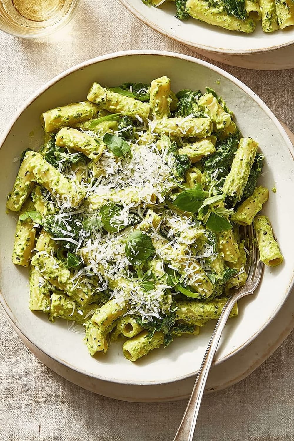 Start with a light caprese salad featuring fresh mozzarella, tomatoes, and basil. The creamy kale pasta serves as an excellent main course, followed by a simple dessert like lemon sorbet or fresh berries with a drizzle of balsamic reduction. For entertaining, this pasta works beautifully as part of a larger Italian spread with multiple pasta options.