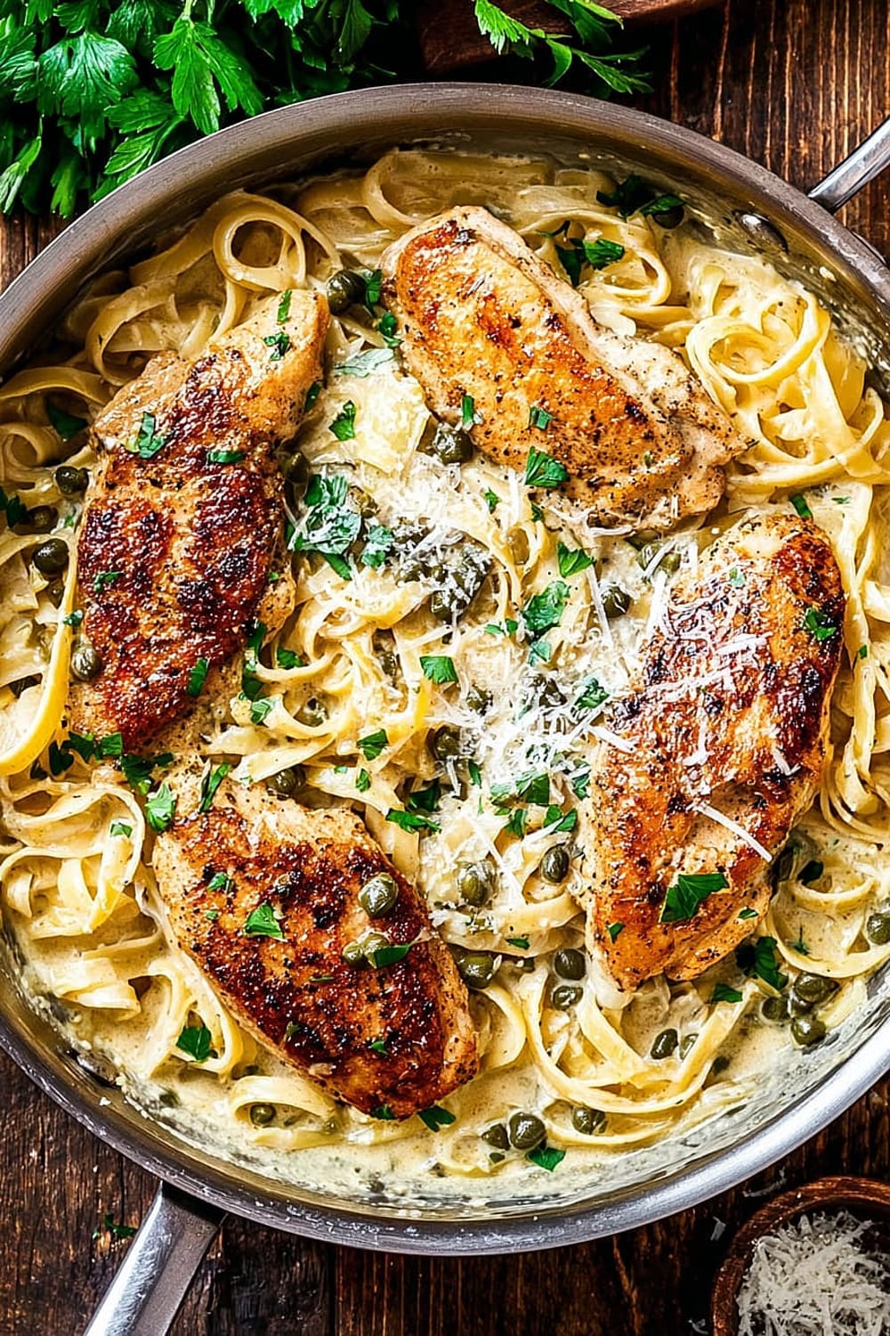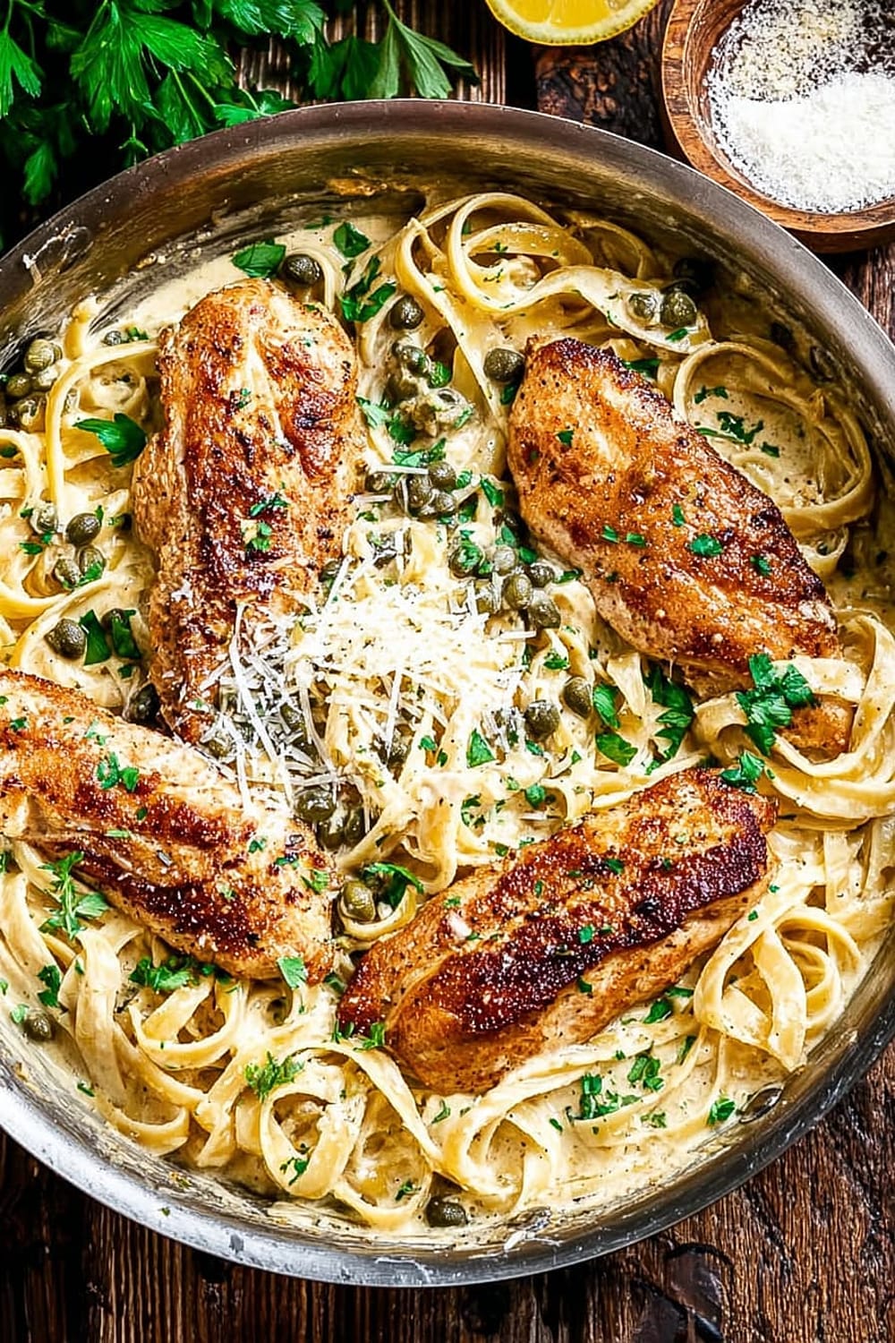 This creamy lemon chicken piccata fettuccine is what happens when you take a classic Italian dish and give it the pasta treatment it always deserved.