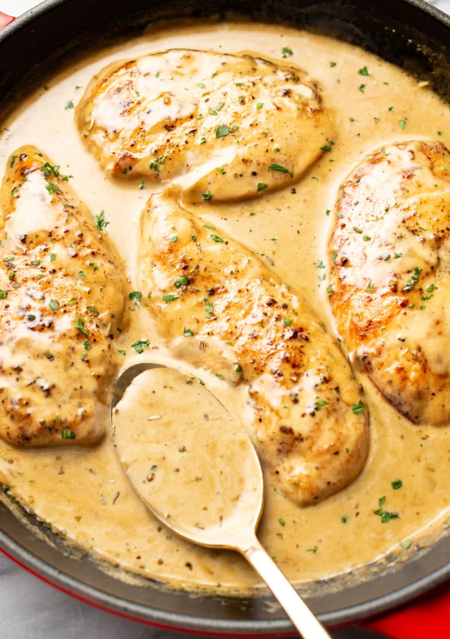 When cooking the chicken, don’t move it around too much. Let it sit for the full 4-5 minutes per side to get a nice golden crust.