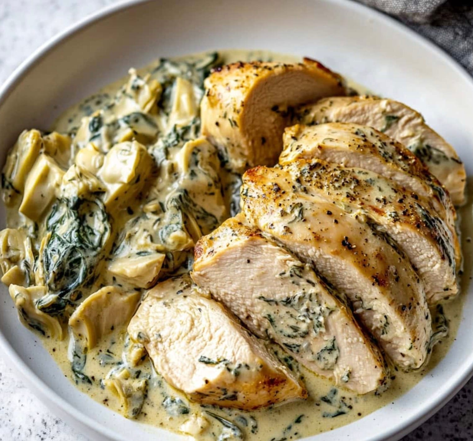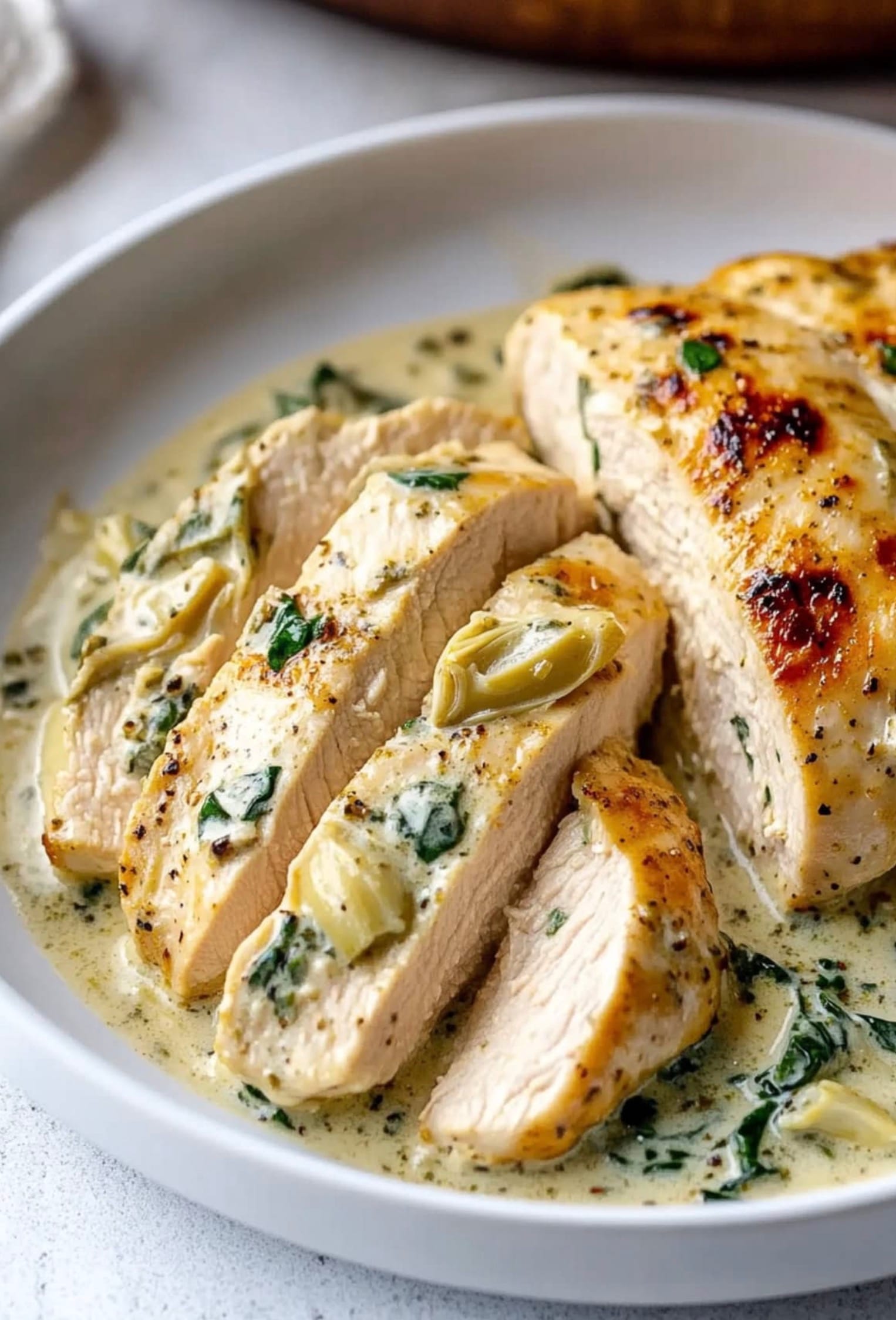The recipe uses common items like chicken breasts, spinach, and artichokes. You’ll cook the chicken in a skillet, then make a rich sauce with cream cheese and Parmesan. The result is a meal that’s both fancy and easy. It’s perfect for a weeknight dinner or when you want to impress guests without spending hours in the kitchen.