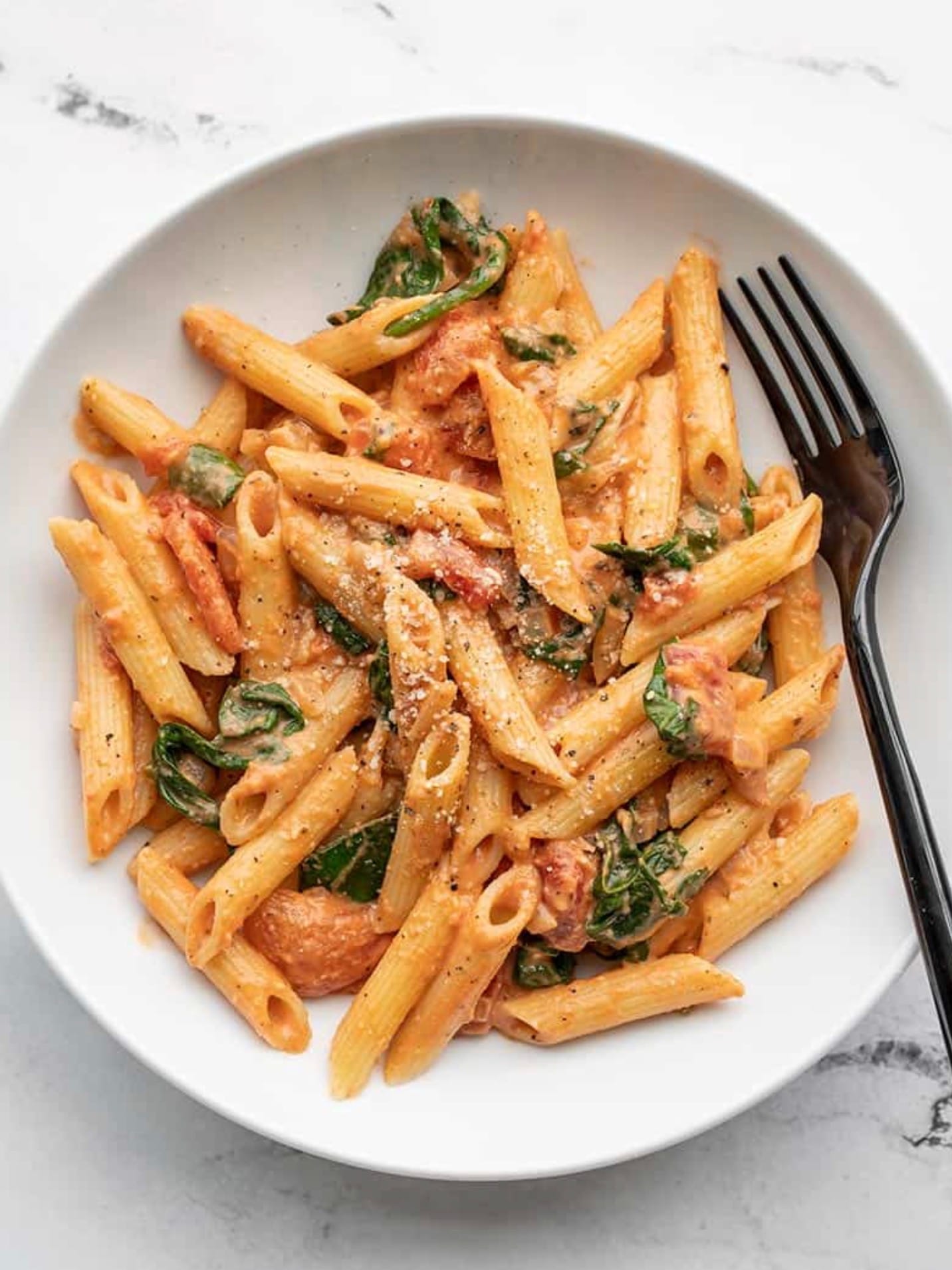 This pasta dish is both creamy and healthy. The cream cheese and Parmesan add richness, while the spinach adds color and nutrients. The mix of herbs like oregano and basil gives it a nice Italian flavor. Plus, you can easily change it up by using different pasta shapes or adding extra veggies.