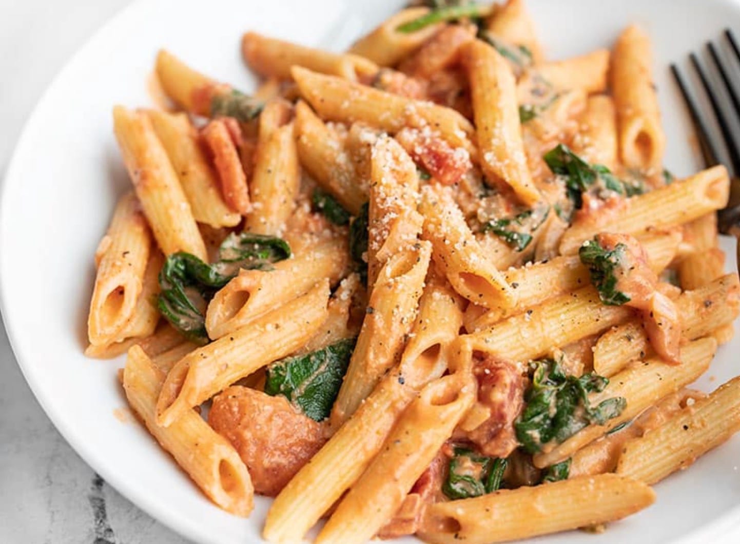 Serve your creamy tomato and spinach pasta while it’s hot. Enjoy your tasty homemade meal!