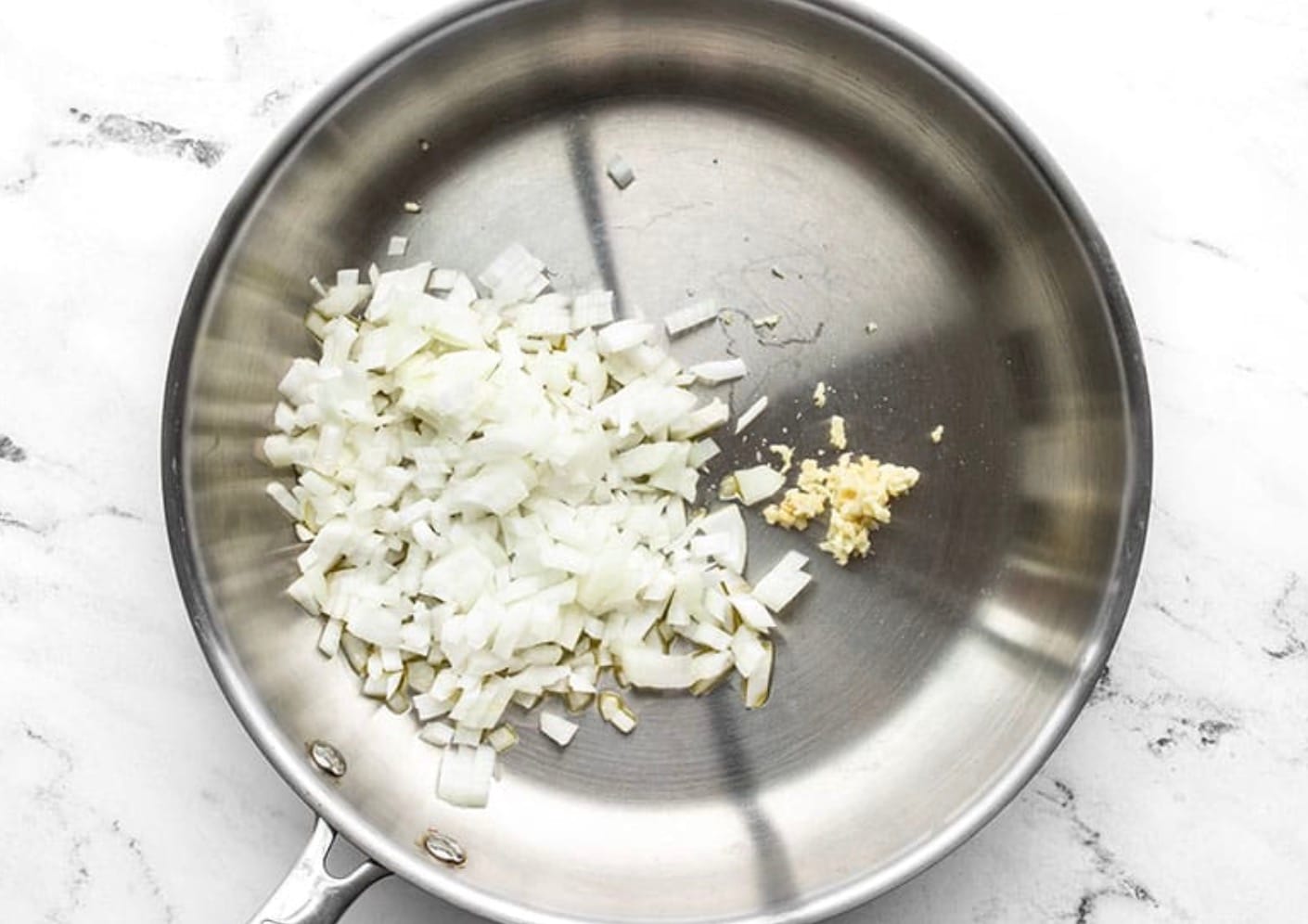 Got everything? Great! This recipe serves 4 and takes about 25 minutes total. The prep is quick – just 5 minutes to chop the onion and garlic. Then it’s 20 minutes of cooking time.