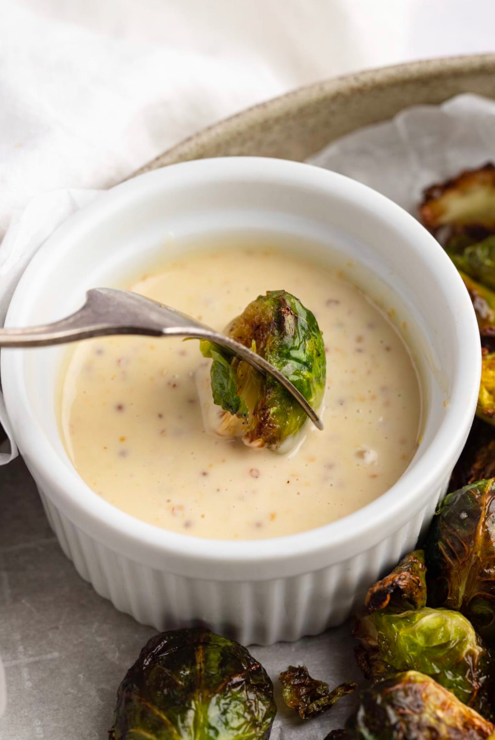 Remember to split the maple syrup – you’ll use half for coating the sprouts and half for the dip. This sweet touch helps balance the natural bitterness of the Brussels sprouts.
