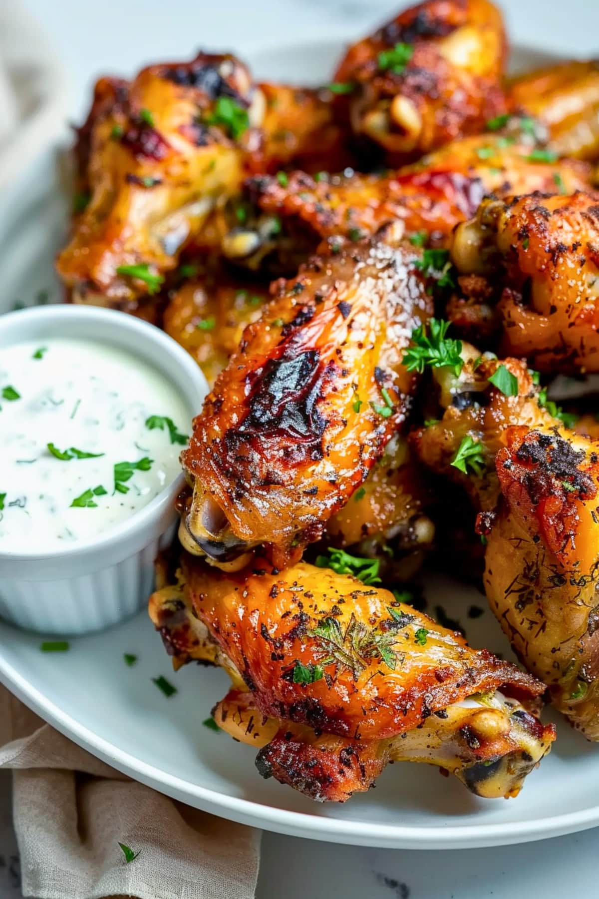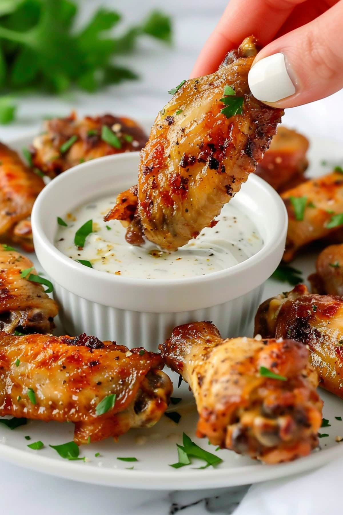 For extra crispy wings, pat them dry with paper towels before seasoning. This removes excess moisture and helps the skin get nice and crispy.