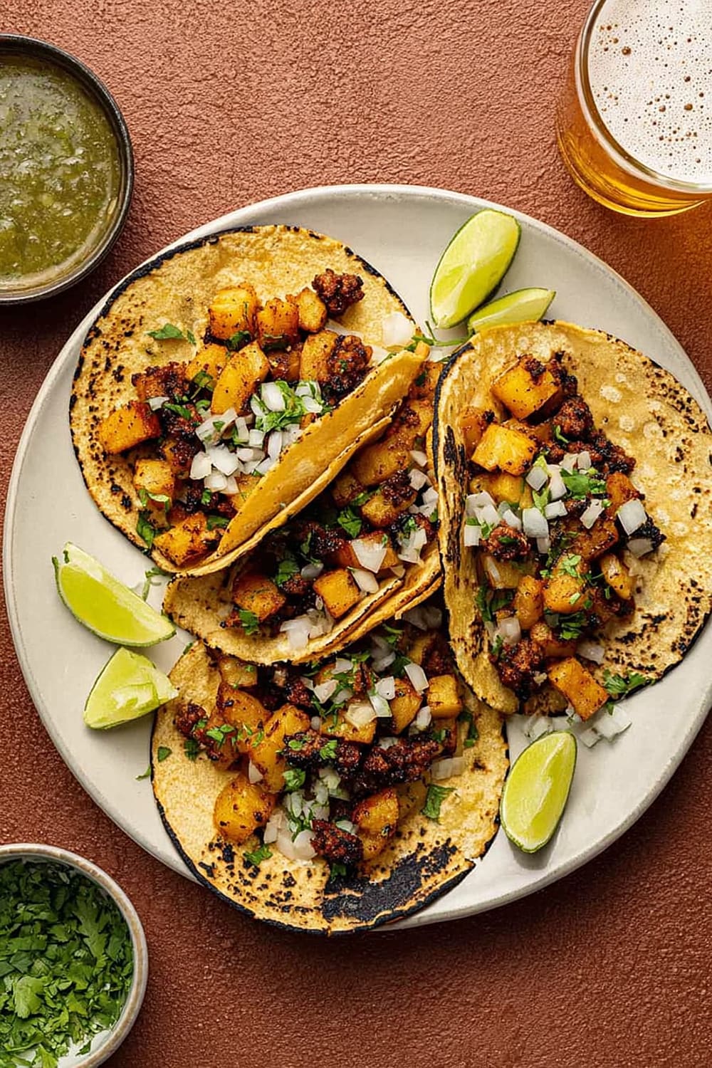 Mexican lagers like Corona or Dos Equis complement the spicy chorizo beautifully, while their crisp, clean finish cuts through the richness of the potatoes. For wine lovers, a Spanish Tempranillo or Garnacha pairs wonderfully with chorizo’s smoky spices. Non-alcoholic options include horchata, which provides creamy coolness, or fresh lime agua fresca to enhance the citrus notes already present in the dish.