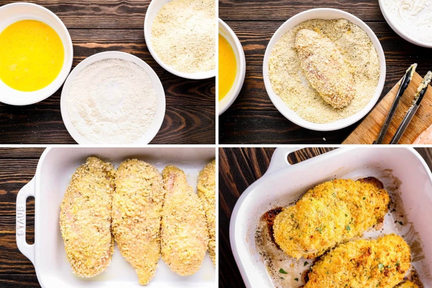 The secret to getting that crispy, golden-brown crust is dipping the chicken in flour, eggs, and a breadcrumb mixture. This three-step process helps the coating stick to the chicken and gives it that satisfying crunch. You’ll bake the chicken in the oven, which means less mess and healthier results compared to frying.