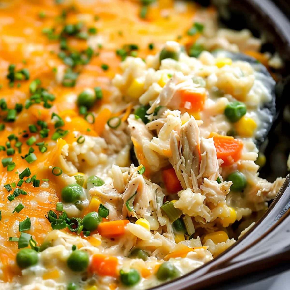 Remember to use low-sodium broth to keep the salt level in check. You can always add more seasoning later if needed. The cream of chicken soup gives the dish its creamy texture, while the cheese adds a delicious gooey finish.