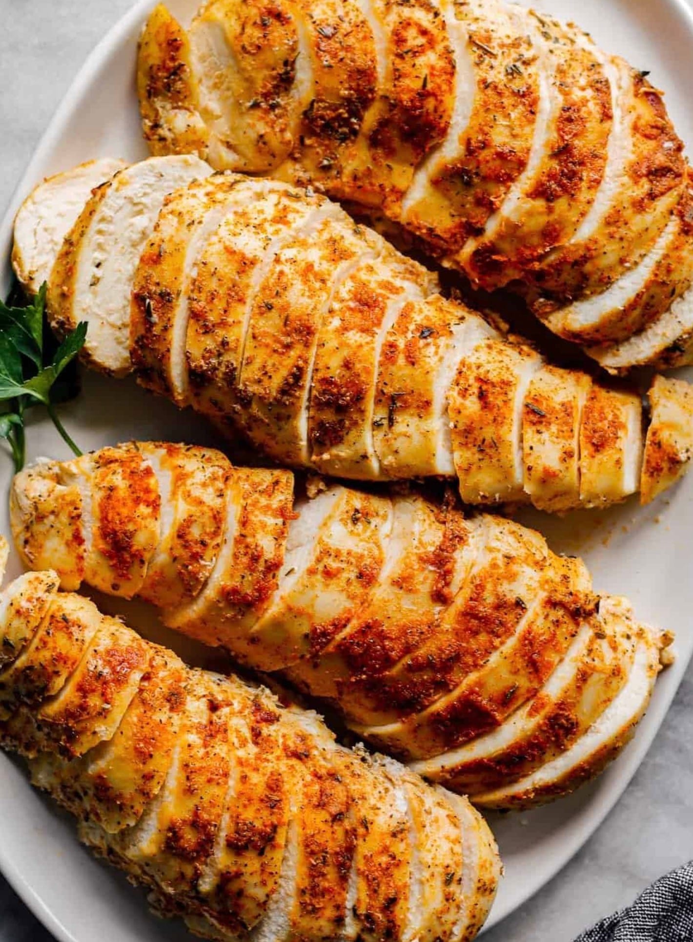 The olive oil helps the seasoning stick to the chicken. The mix of spices gives the chicken a yummy flavor without being too strong.