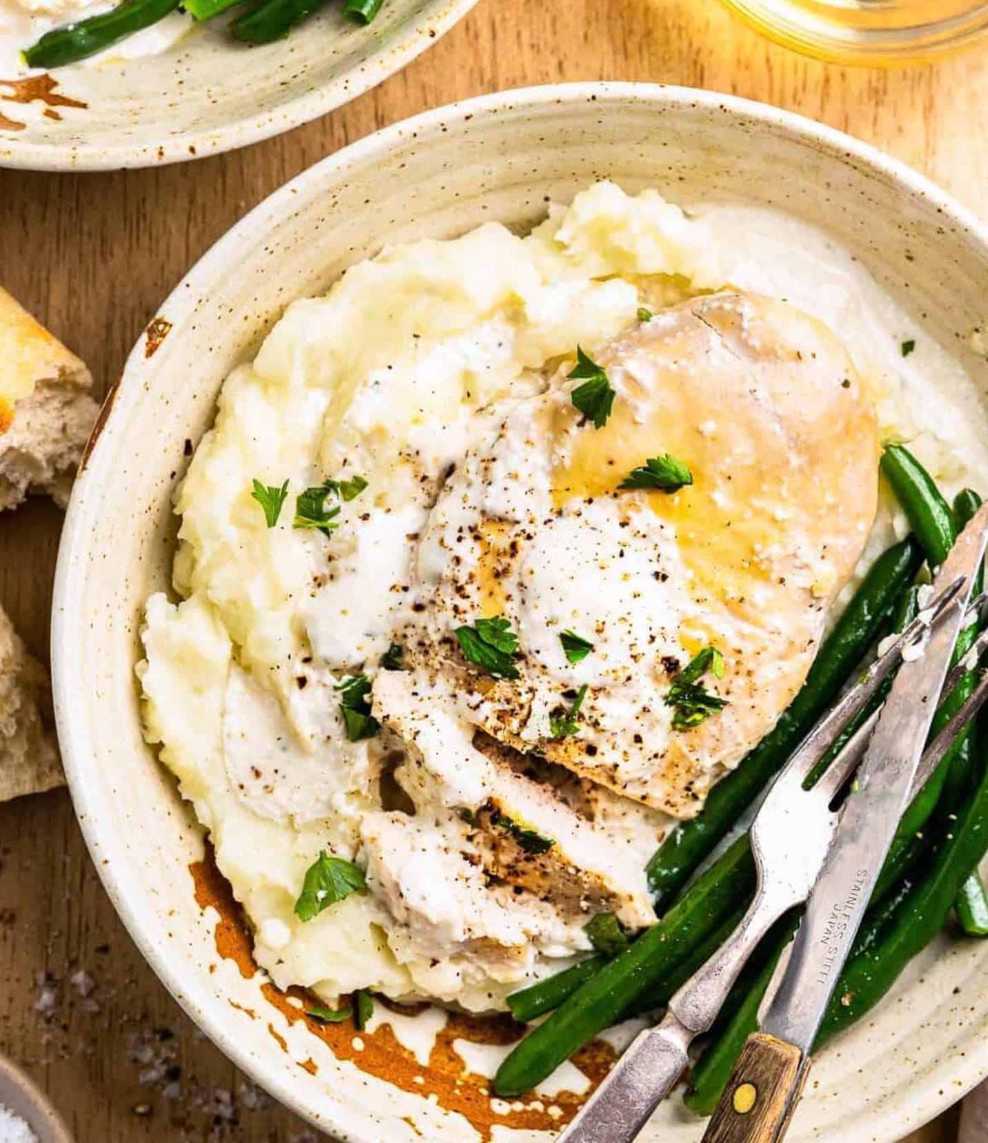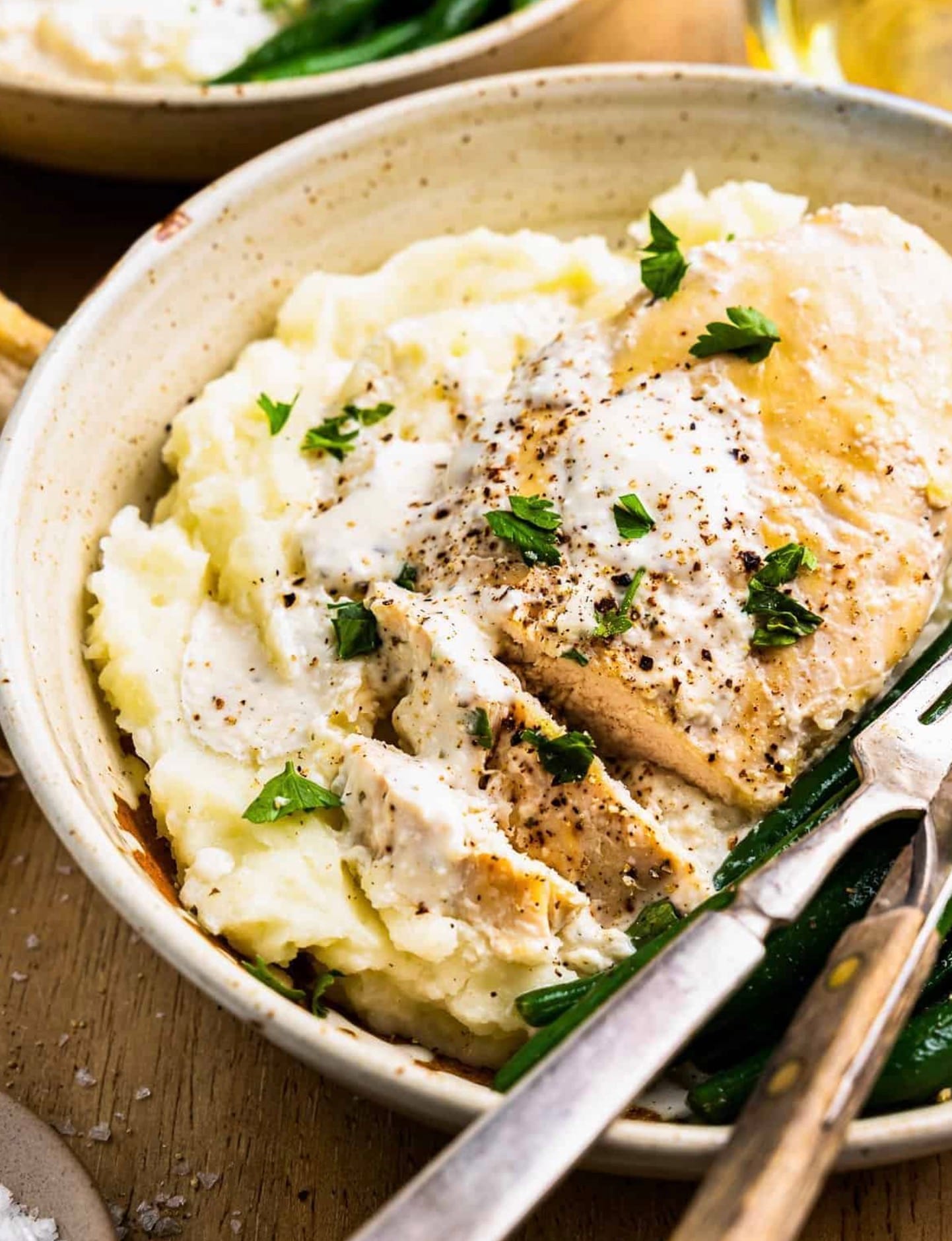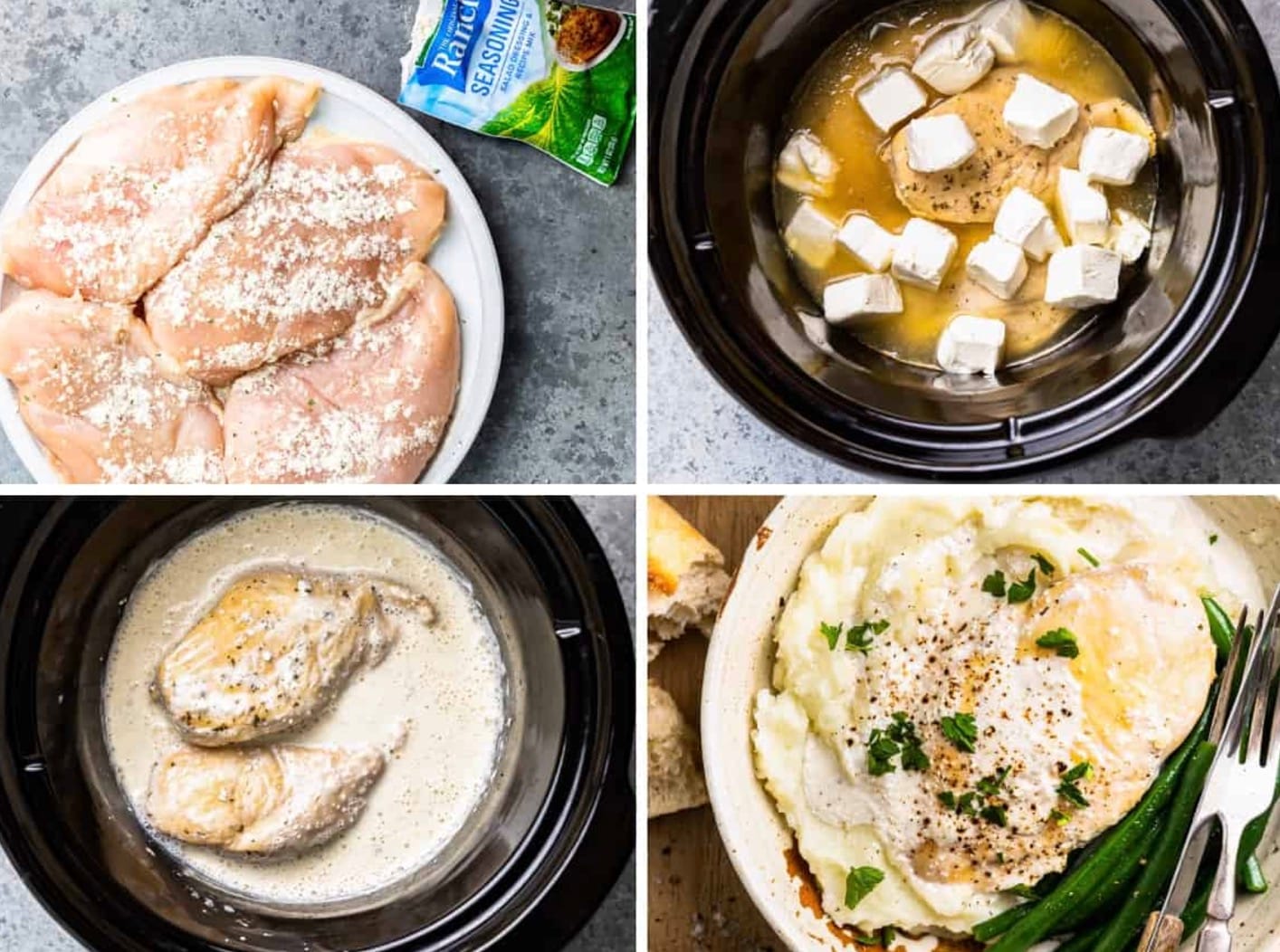 That’s it! Just four simple ingredients. The chicken breasts form the base of this dish. Ranch seasoning adds a zesty flavor. Chicken broth keeps everything moist. Cream cheese makes the sauce rich and creamy.
