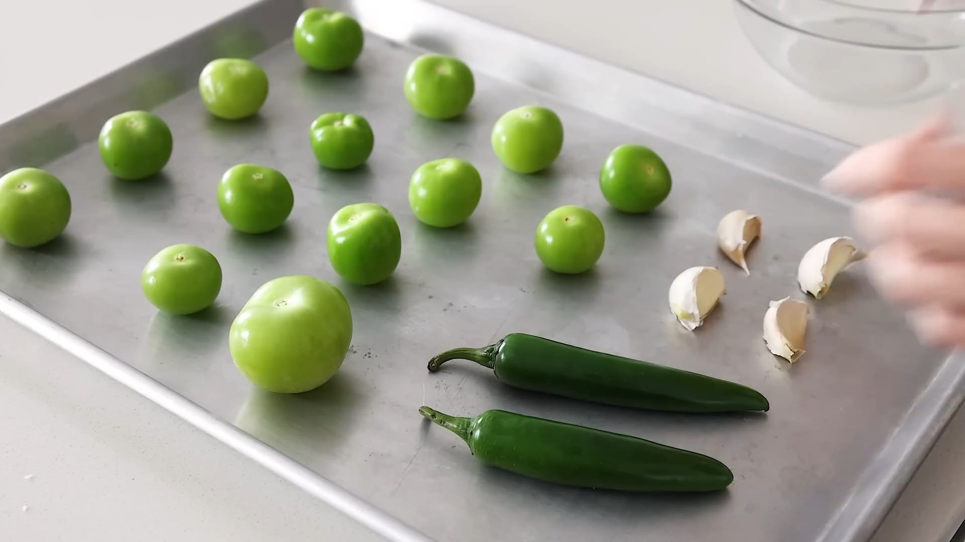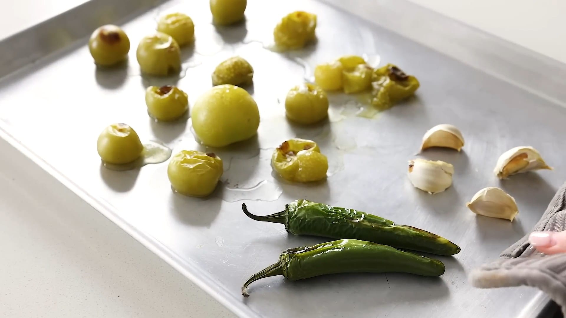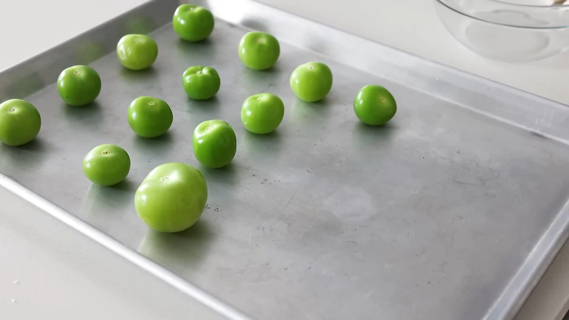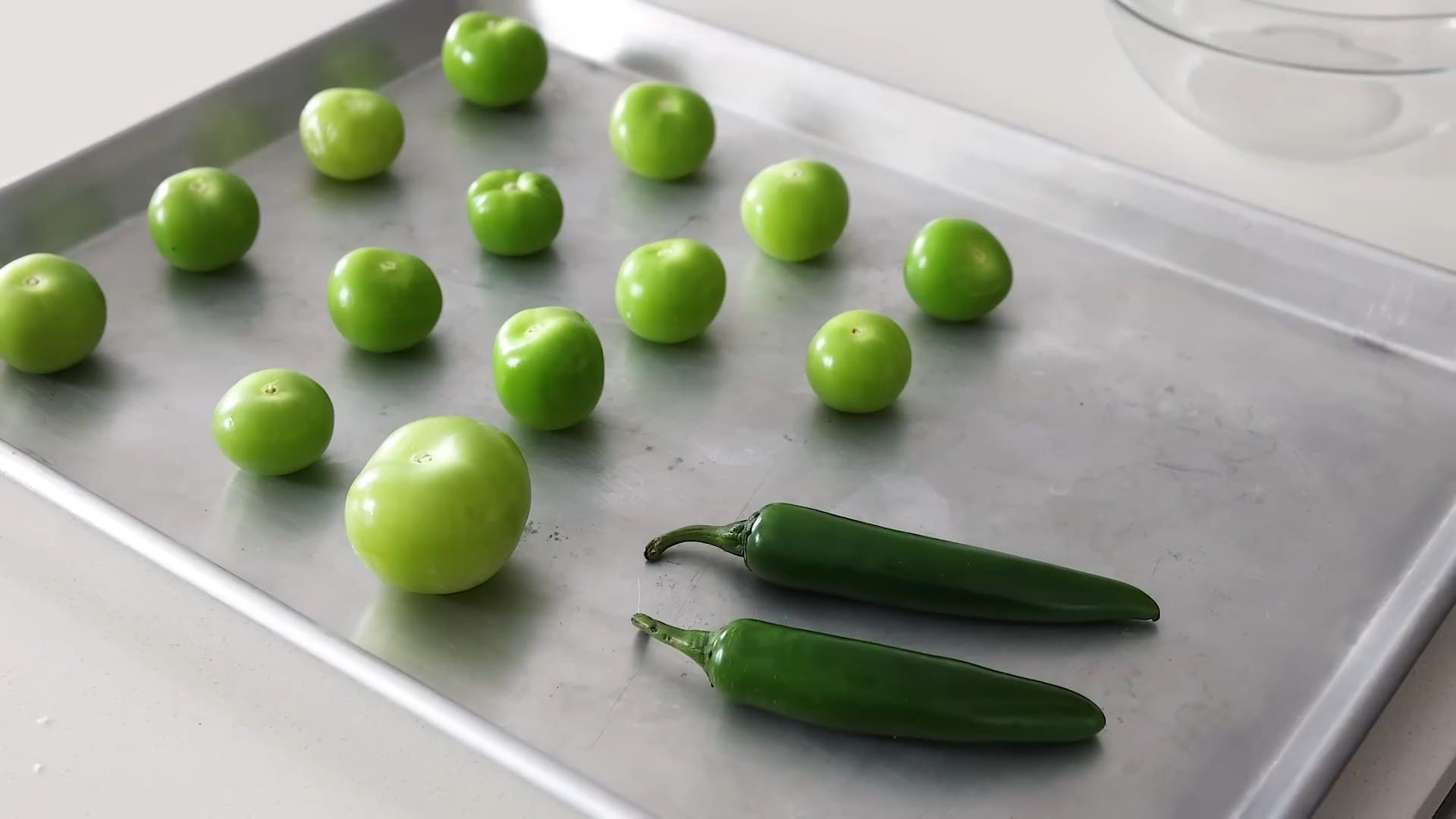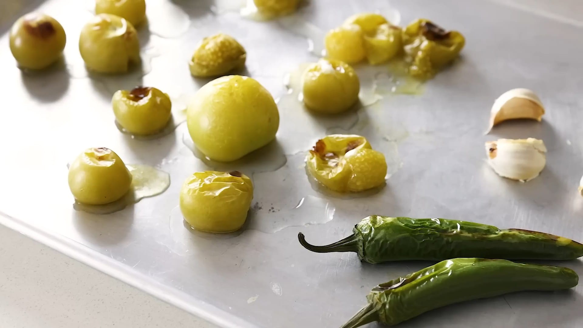 Place the tomatillos on a baking sheet.