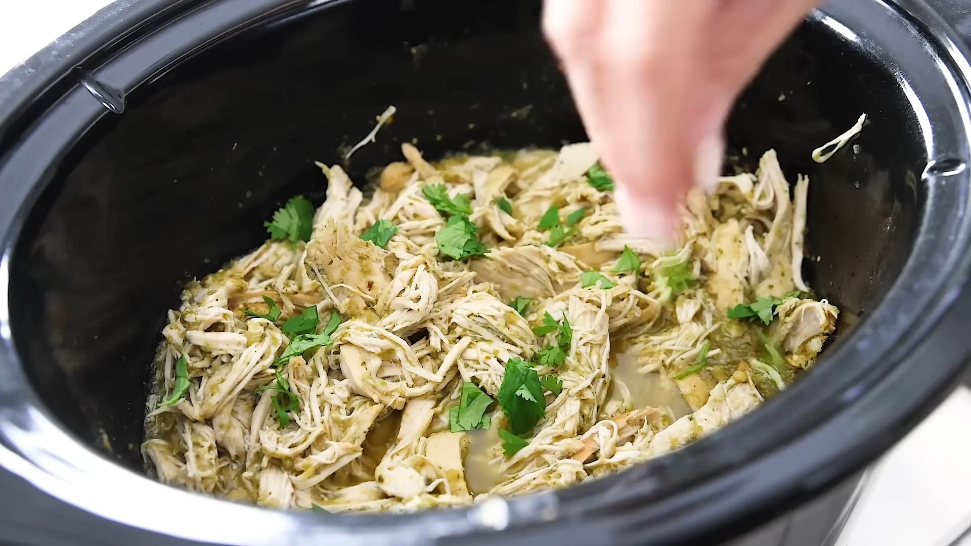Return the shredded chicken to the crockpot.