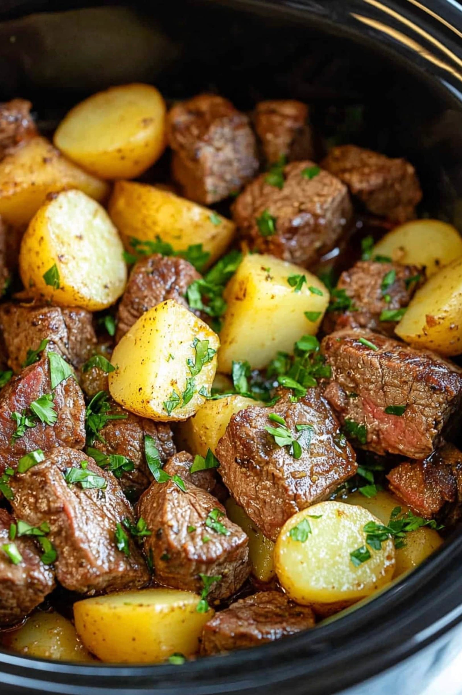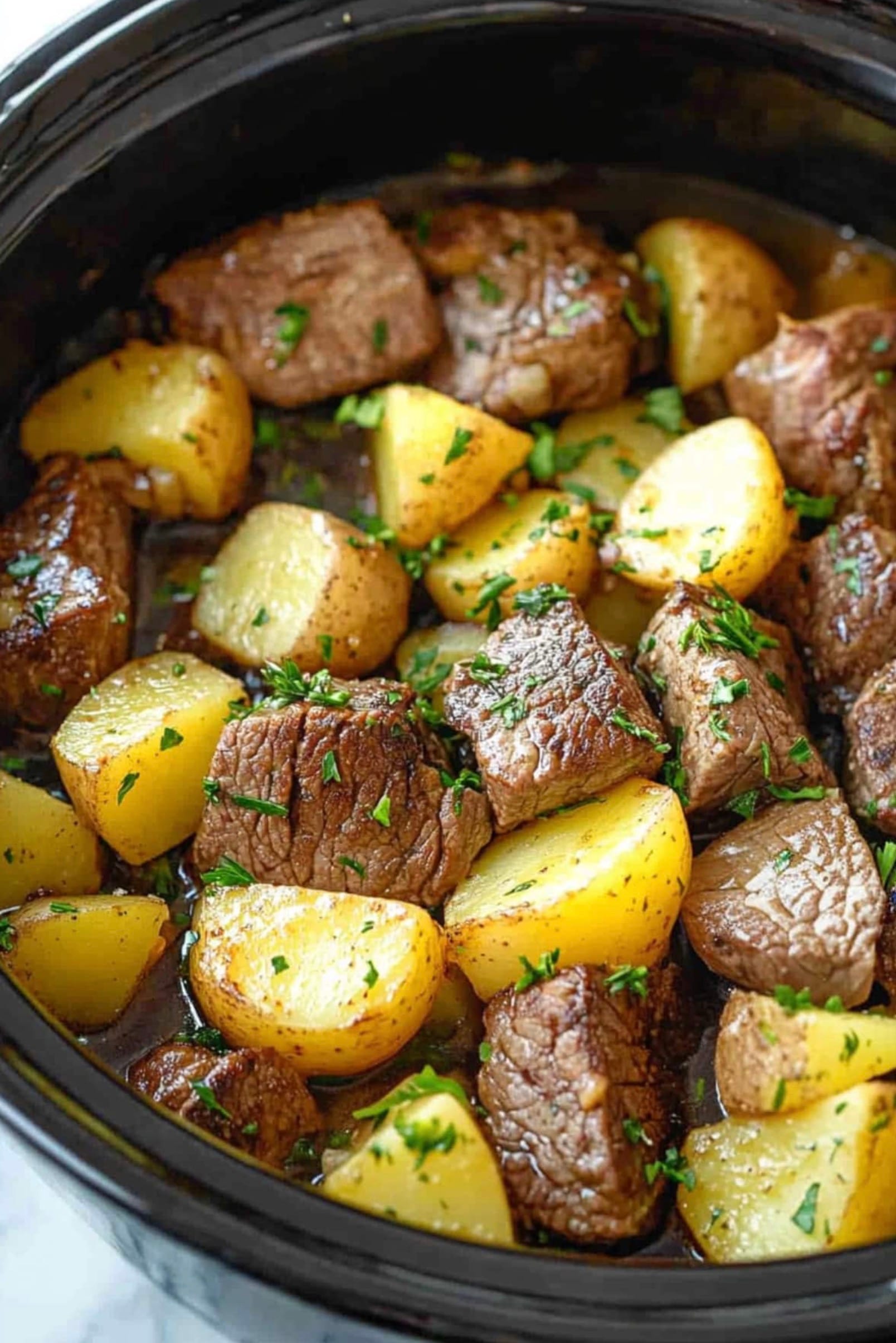 To make this crockpot steak and potatoes recipe more diabetes-friendly, you can make a few simple changes. First, cut down on the potatoes. Use just 1 pound instead of 2, and add more non-starchy veggies like carrots or green beans.
