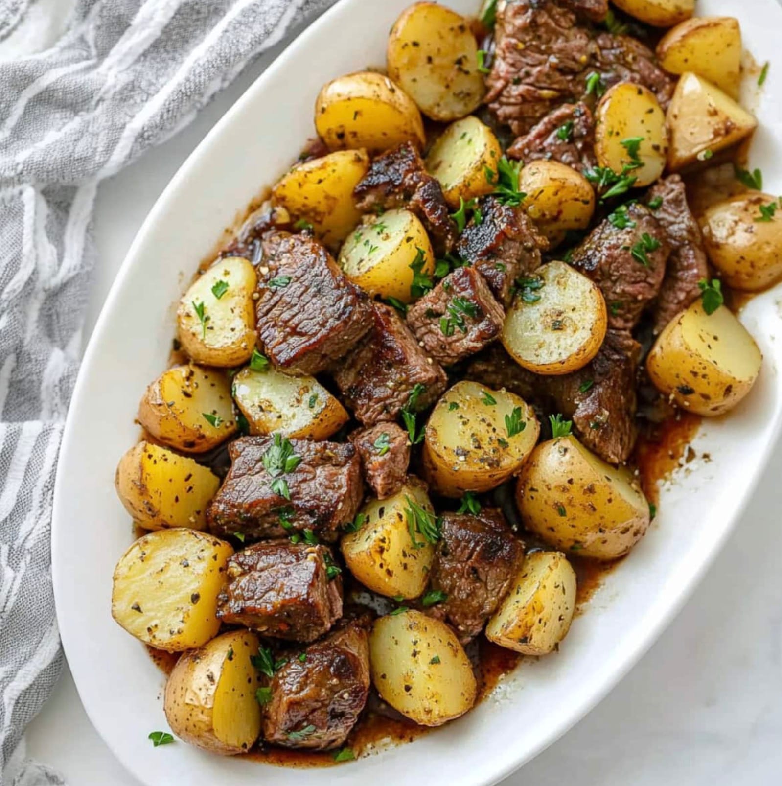The dish uses simple ingredients like sirloin steak, baby potatoes, onions, and spices. You’ll love how the meat turns out tender and full of flavor. The potatoes soak up all the tasty juices too. It’s a filling meal that your whole family will enjoy.