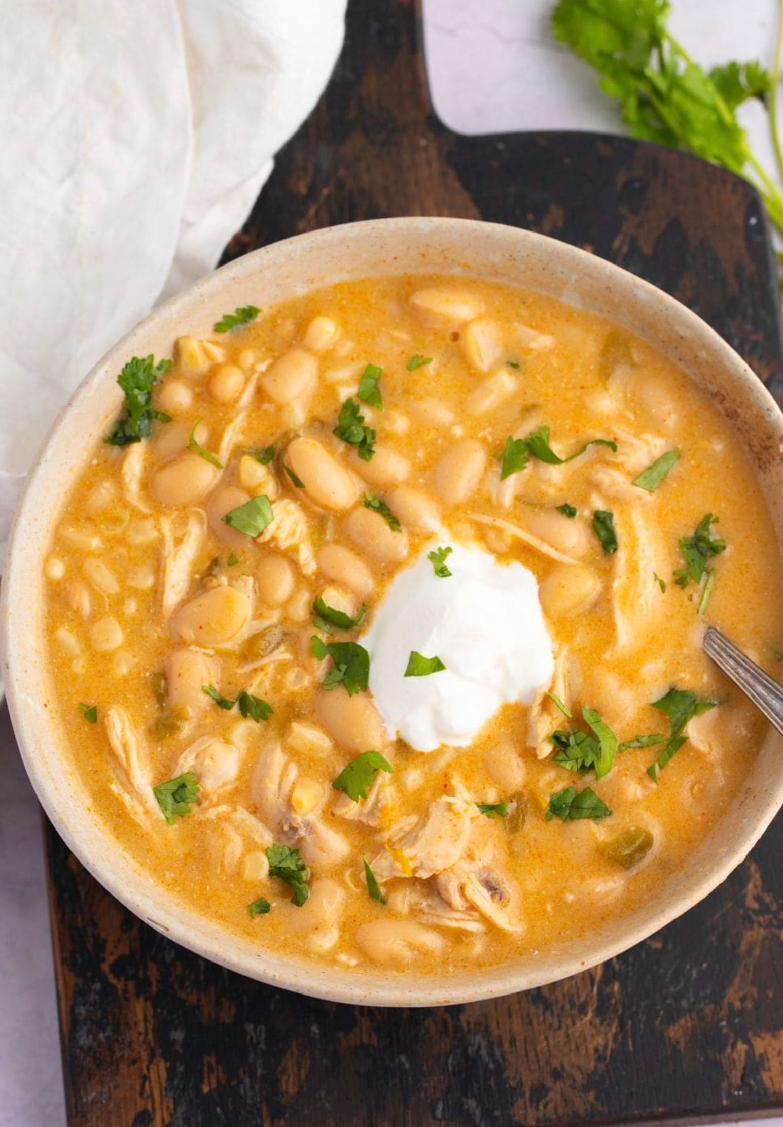 You’ll need chicken, beans, corn, and some spices. Just layer everything in the crockpot and let it cook. After 8 hours, you’ll have a warm, creamy chili. It’s perfect with some cornbread on the side.