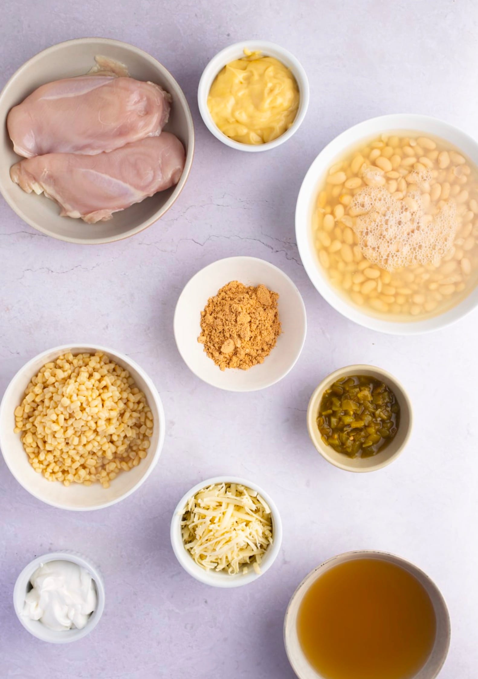 The chicken breast is the star protein. The beans and corn add nice texture. The broth, soup, and chiles create a flavorful base.