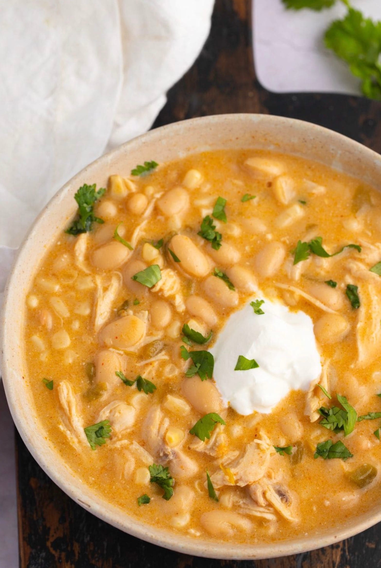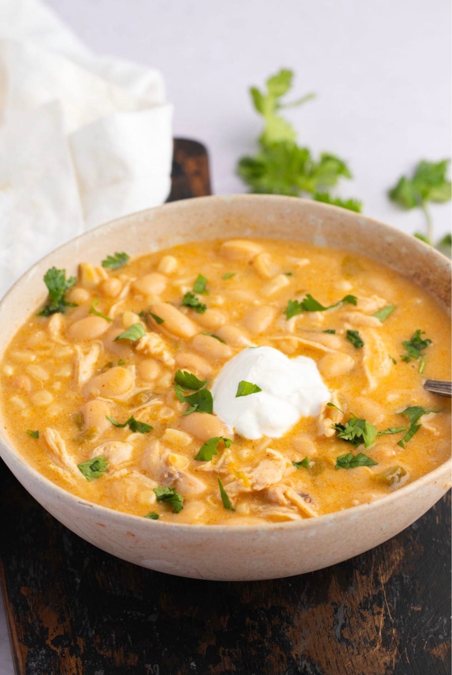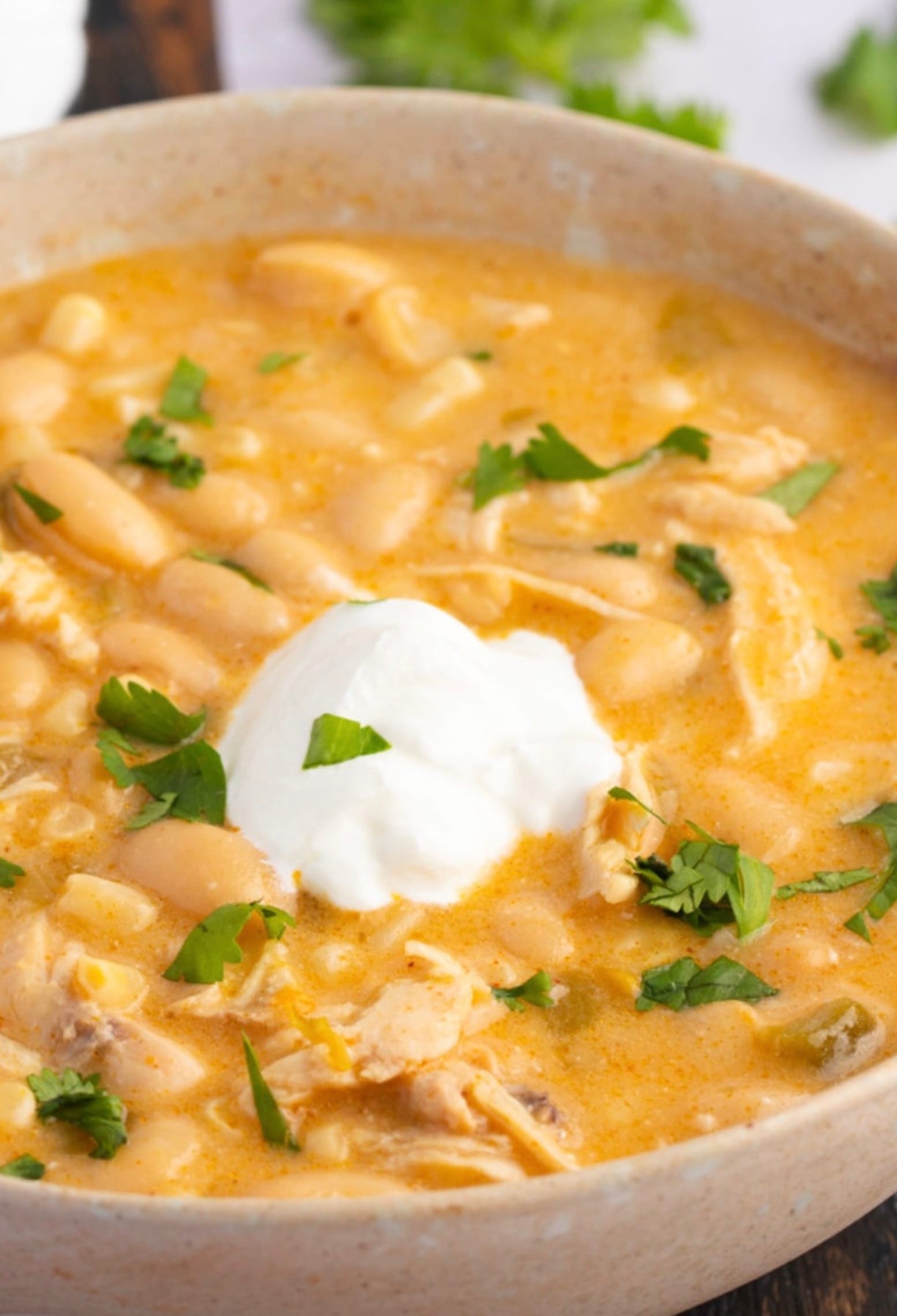 Crockpot white chicken chili is a tasty and easy meal for cold days. You can make it with just a few simple steps. This recipe serves 10 people and only takes 10 minutes to prep. The slow cooker does most of the work for you.